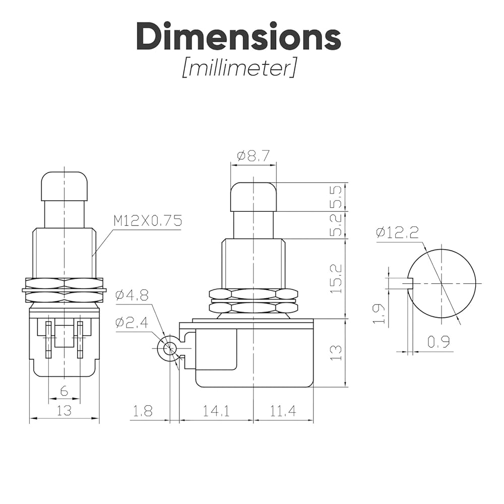 2-Pack Momentary Foot Switch, Off-(ON) SPST 2Pin 12mm/0.47" Normally Open Soft Touch Heavy Duty Stomp Box Push Button Footswitch for Guitar Effect Pedal