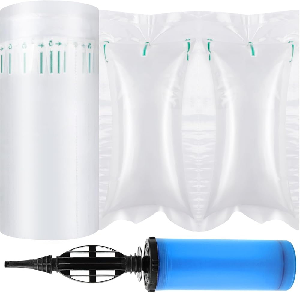 • Package Includes: 1 roll of compact air cushion film roll and 1 hand air pump(random color). The pump is manually operated, similar to a bicycle pump. For greater efficiency, it is recommended to use a bicycle pump or an electric pump. Air pocket size: 3.54 inches x 7.87 inches.