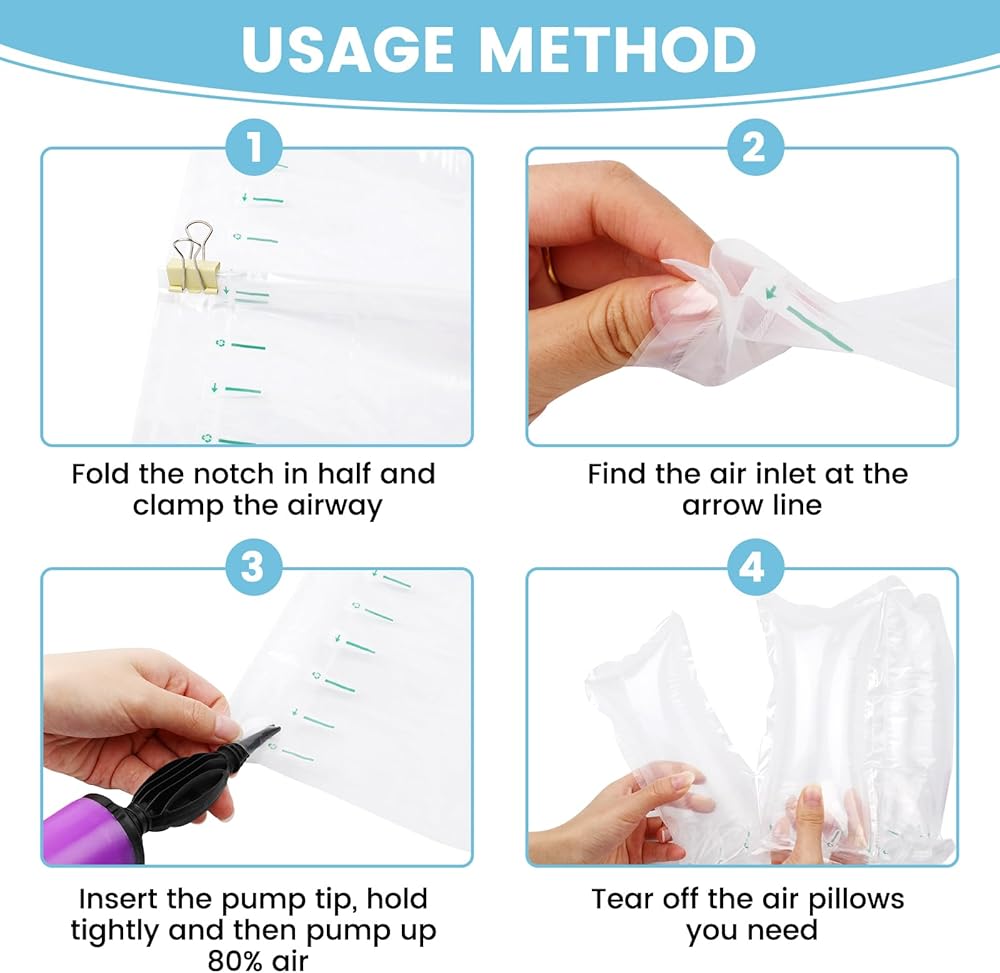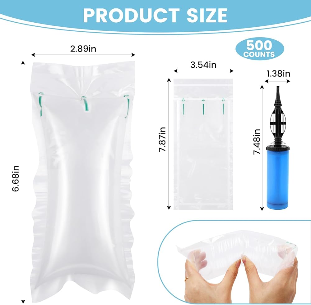 Air Pillows for Shipping with Pump Packaging Air Bags, 500 Count Inflatable Packaging Filler Shipping Supplies Alternative to Packing Peanuts, Purse Stuffers for Shape 3.54" x 7.87"