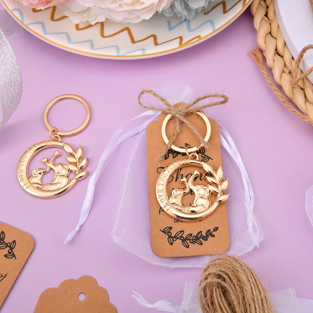 كمية المنتج: تحتوي كل مجموعة على 24 سلسلة مفاتيح على شكل فيل هيفينلي و24 بطاقة و24 حلقة مفاتيح للضيوف البالغين كهدية زفاف أو عروس؛ كافية لتلبية احتياجات حفل الزفاف أو استقبال المولود الجديد