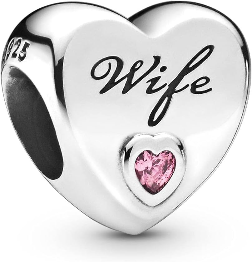 احتفل بنصفك الآخر مع هذه القطعة الساحرة من الفضة الإسترلينية من مجموعة Pandora Moments دع الآخرين المهمين يعرفون مدى نعومها بإهدائها سحر الحب على شكل قلب مع الكريستال الوردي على شكل قلب والنقوش الجميل الذي يقول ببساطة 'Wifee. مع هذا التحفيز الجديد على سحر التفاني، يمكنك التأكد من أنك ستكون جوهرة خاصة حقًا في مجموعة باندورا الساحرية.