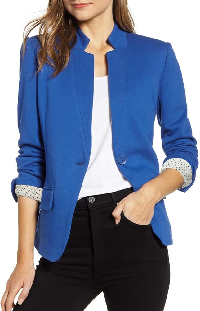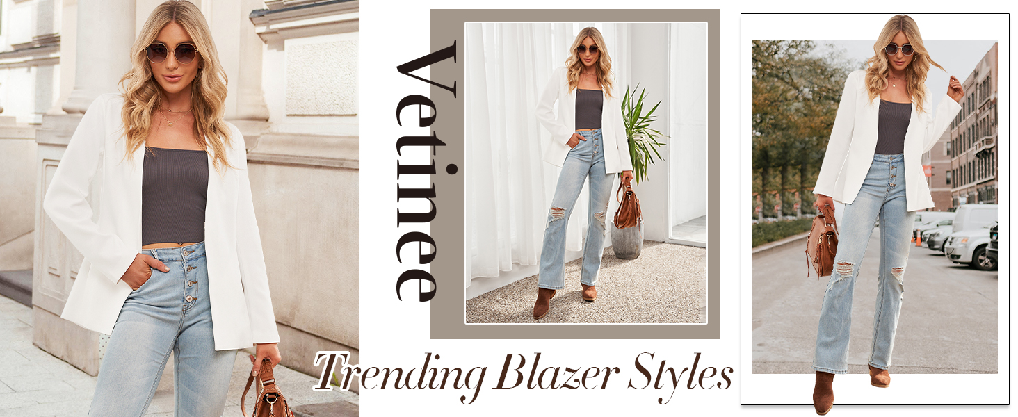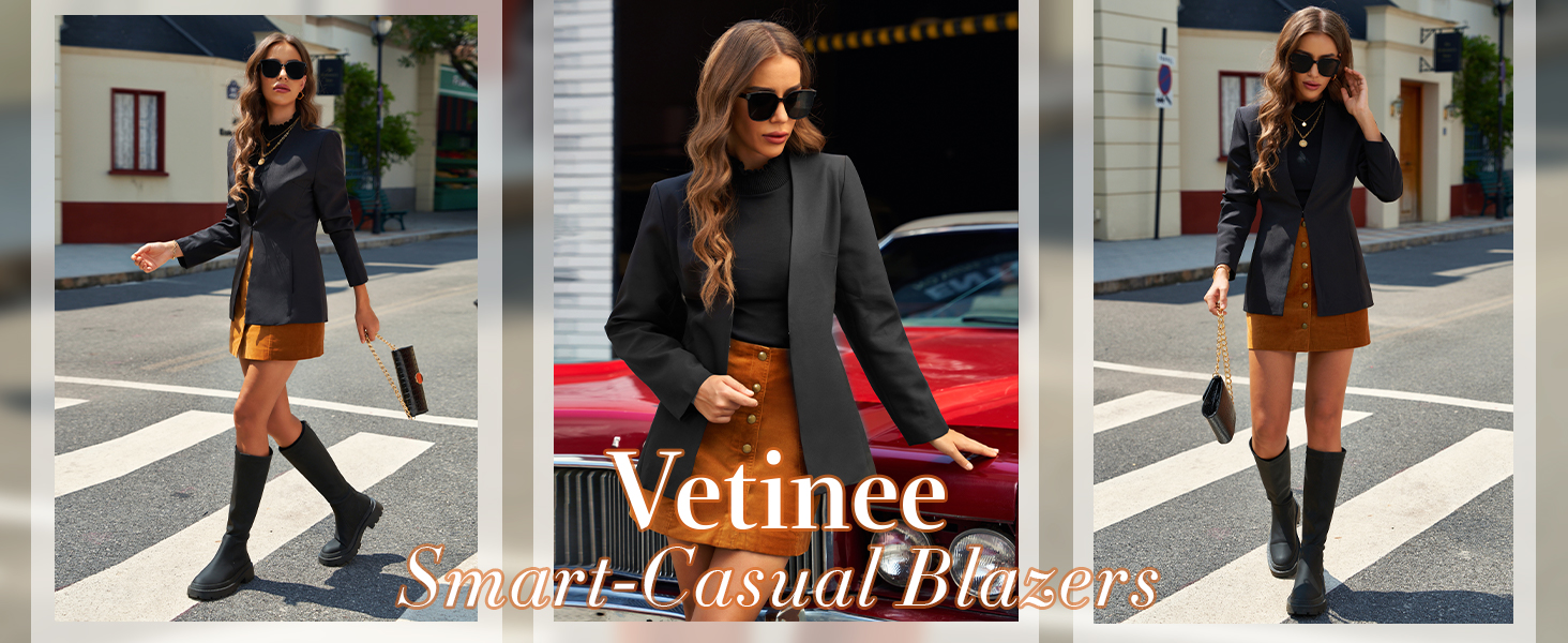 سترة نسائية من Vetinee بجيوب أمامية مفتوحة وأكمام طويلة للعمل والمكتب