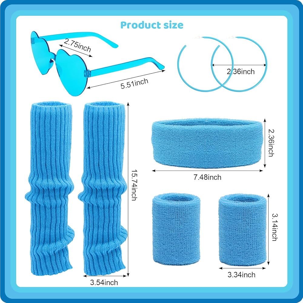 مقاس الزي النيون في الثمانينيات: قطر الأقراط 2.36 سم، لها ملمس جيد، مشرق ولافت للنظر؛ إطار النظارات على شكل قلب بطول 5.6 سم، مناسب للبالغين والمراهقين؛ قطر عصابة الرأس 7.48 بوصة مرن ليناسب معظم الأشخاص، ويمتص العرق جيدًا؛ سوار المعصم مرن بما يكفي ليناسب معصم معظم الأشخاص؛ يمكن استخدام تدفئة الساق بطول 15.74 بوصة وعرض 3.54 بوصة لإبقائك دافئًا أو كإكسسوار يمكن ارتداؤه؛ مع الحزام القابل للتعديل مقاس 26-45 بوصة، تحتوي حقيبة الفاني على حجم كبير