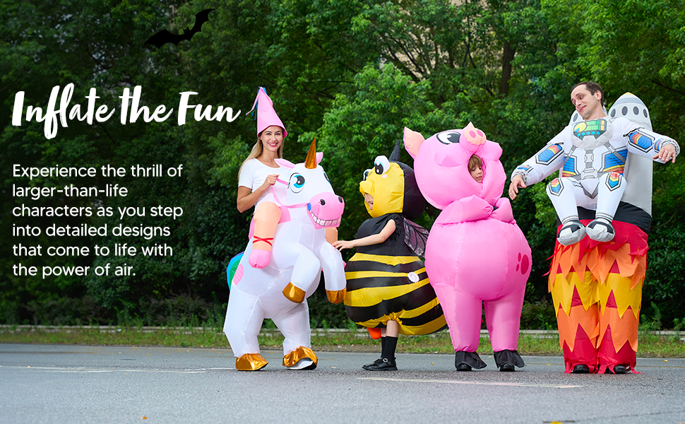 تتضمن العبوة ورقة تعليمات، بدلة للجسم بالكامل قابلة للنفخ، ومضخة هواء. تتطلب مضخة الهواء باور بانك محمول أو 4 بطاريات AA. (البطاريات غير متضمنة)