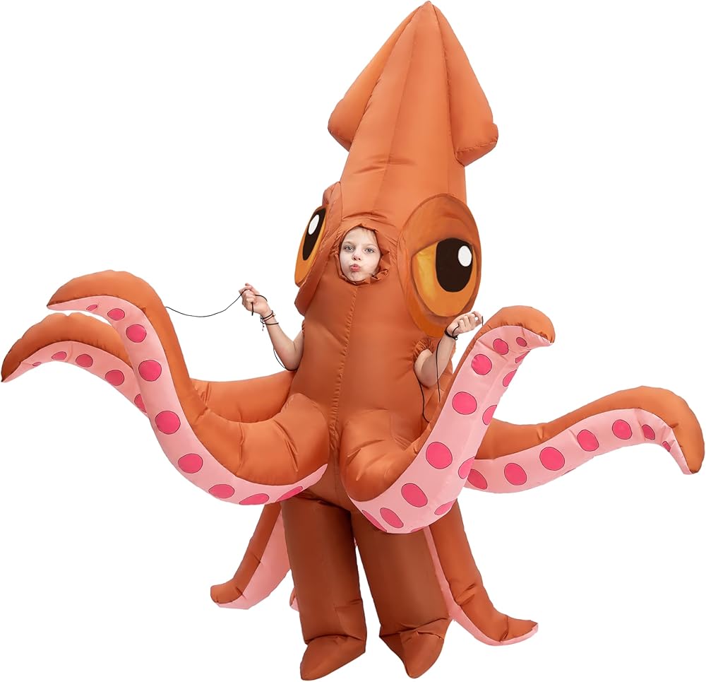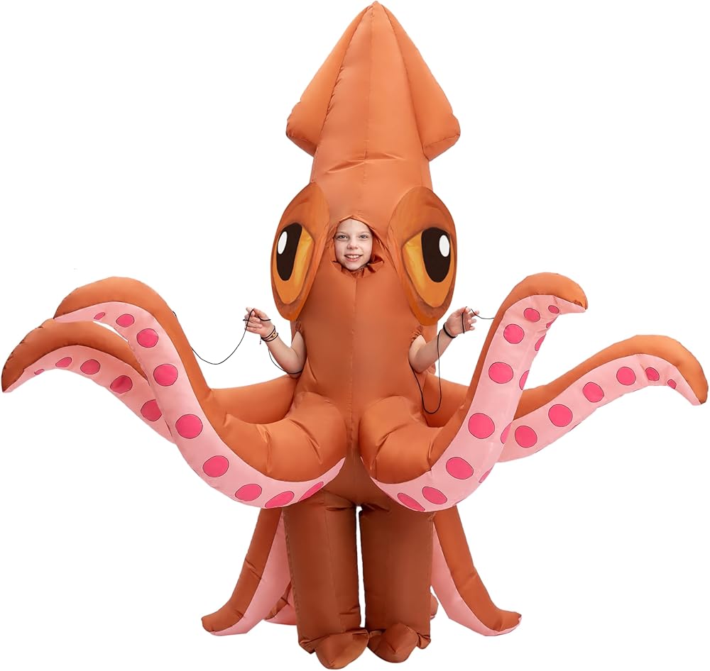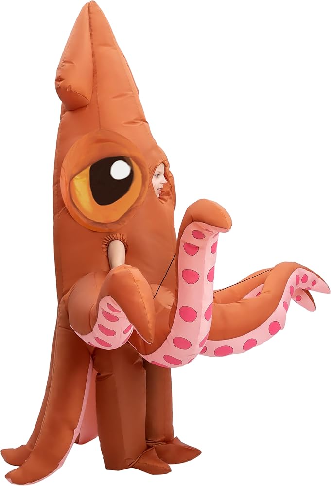 زي حبار فاخر قابل للنفخ من فول بودي سكويد مناسب للأطفال من سن 7 إلى 10 سنوات. هذا الزي الكامل للجسم أكثر من 7 أقدام.