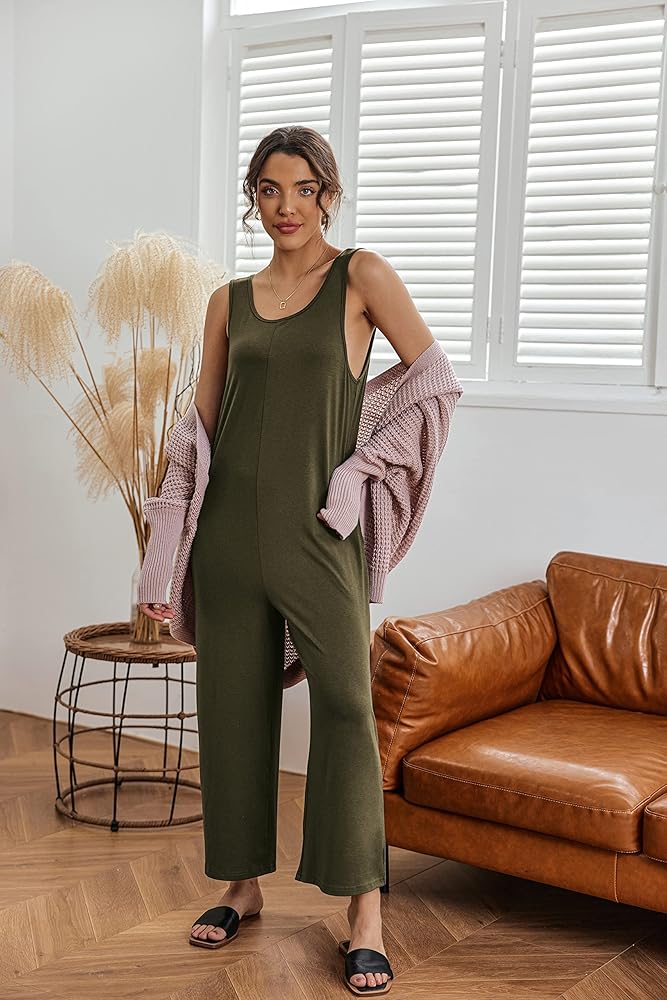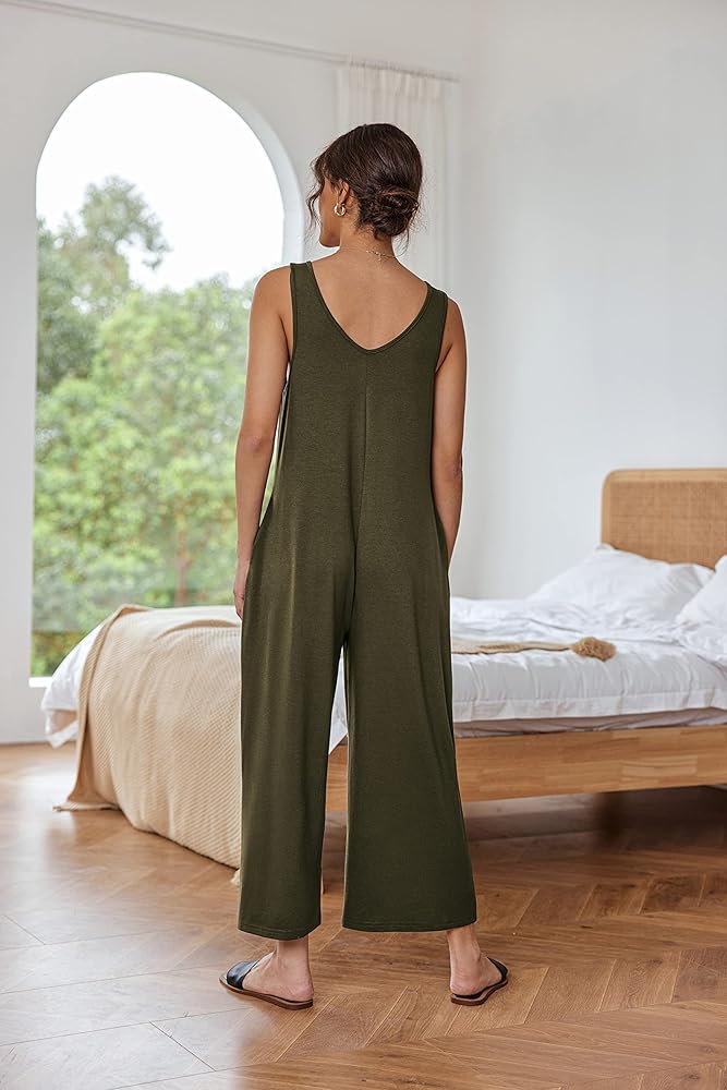 المميزات: الجزء الأمامي برقبة واسعة وظهر بفتحة رقبة عميقة على شكل حرف V، ملابس نوم بدون أكمام مع جيوب جانبية، تصميم سراويل واسعة الساق فضفاضة لمظهر رائع وأنيق. أنت بحاجة إلى هذه البدلة الكاجوال والأنيقة لخزانة ملابسك الصيفية.