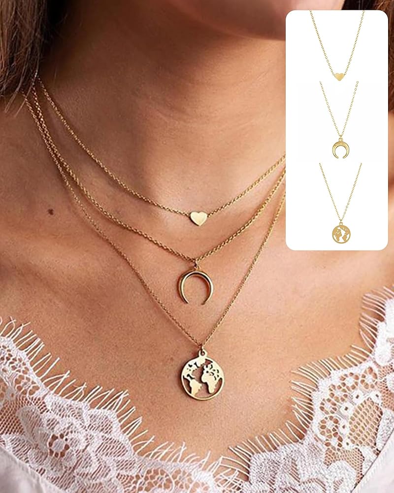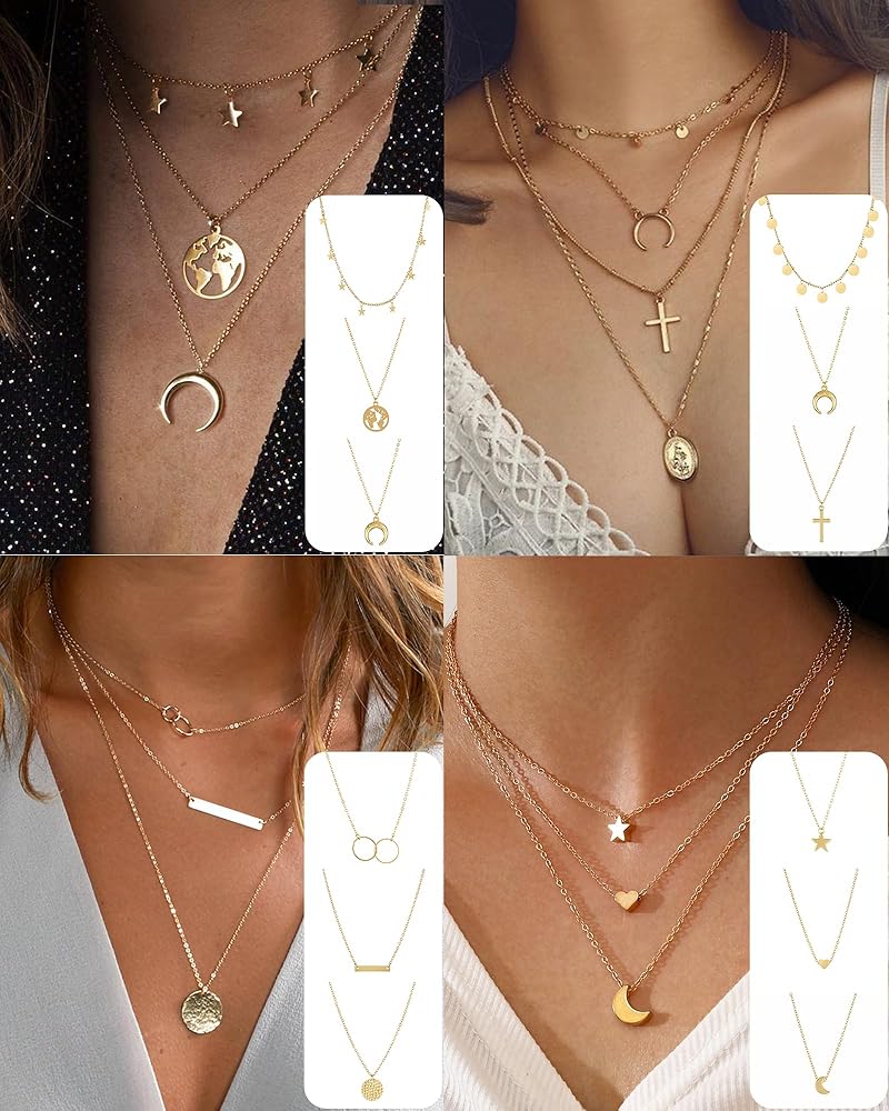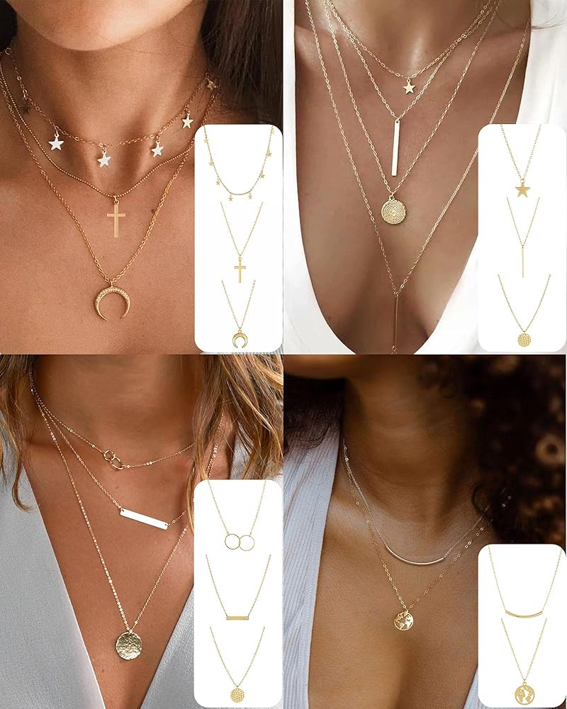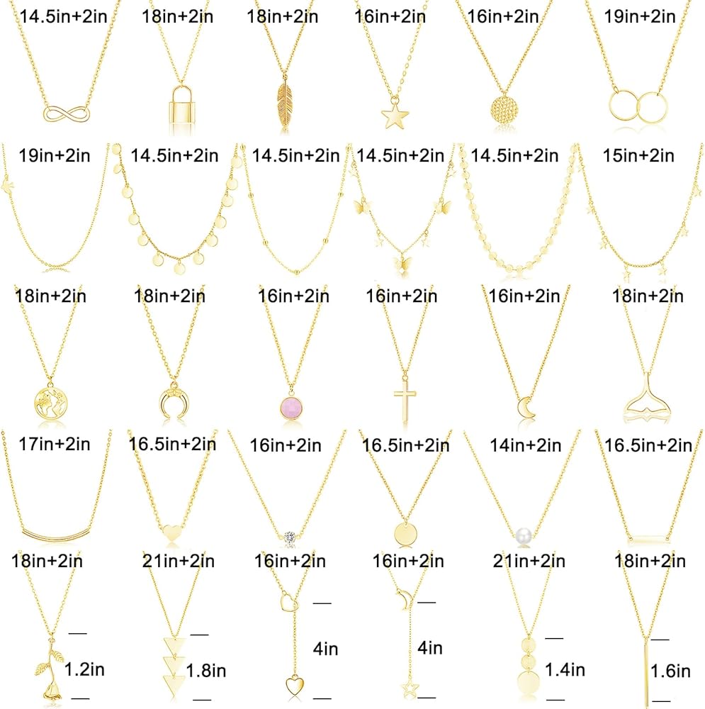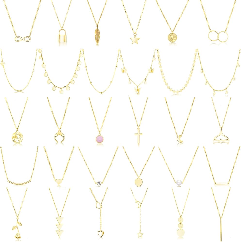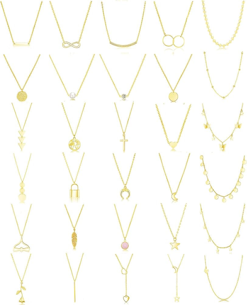 FUNEIA 30 قطعة قلادات ذهبية أنيقة بطبقات للنساء العصرية مطلية بالذهب عيار 14 قيراط صغيرة لطيفة مطرزة على شكل فراشة متقاطعة على شكل قلب وقلادة مجموعة للفتيات المراهقات والنساء مجموعة مجوهرات قلادة