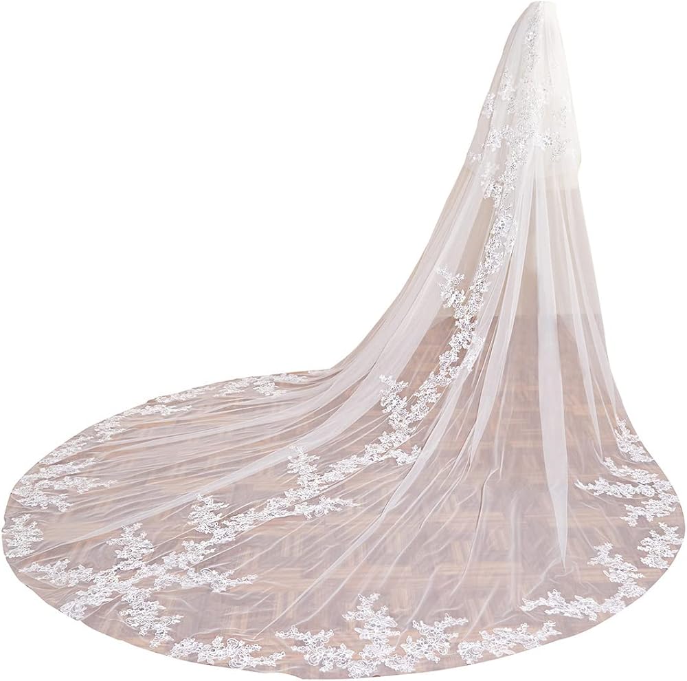 طرحة زفاف EllieWely طويلة من الدانتيل بطبقتين مع مشط معدني