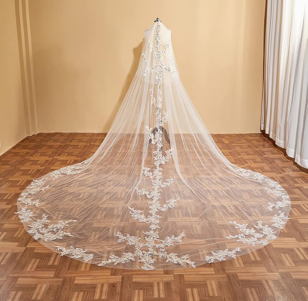 طول الكاتدرائية: 118 بوصة (300 سم تقريبًا) الامتلاء: 118 بوصة (300 سم تقريبًا). الطبقة القصيرة 28 بوصة (70 سم تقريبًا). يمكن تصنيع الطول حسب الطلب، إذا كنت تريد تخصيص طرحة الزفاف، فيرجى الاتصال البائع EllieWely قبل تقديم الطلب.