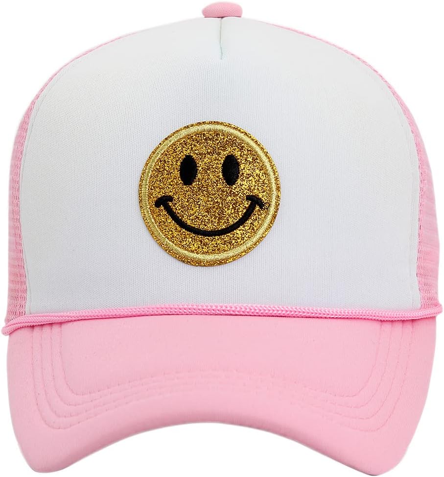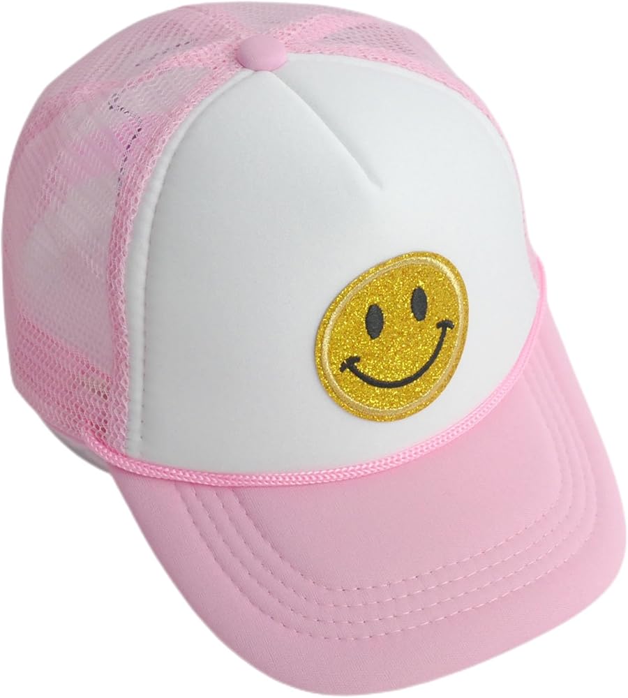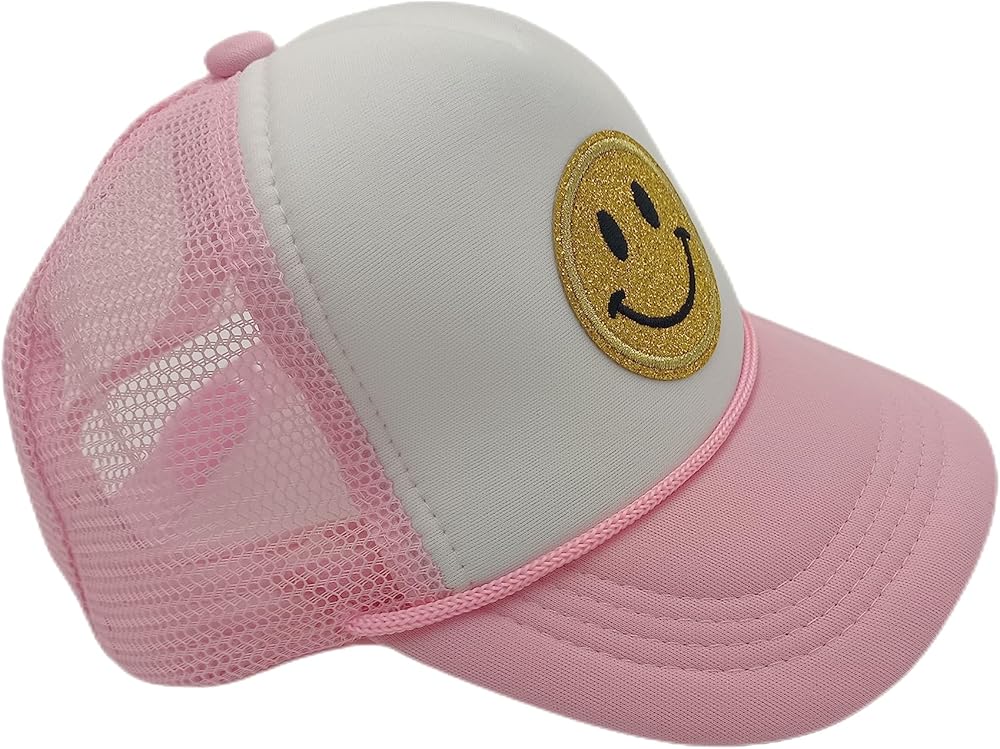 قبعة بتصميم وجه مبتسم للأطفال الصغار، قبعات سائق شاحنة نيون شبكية مع رقعة ابتسامة ترتر، قبعة بيسبول للأولاد والبنات