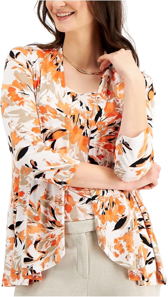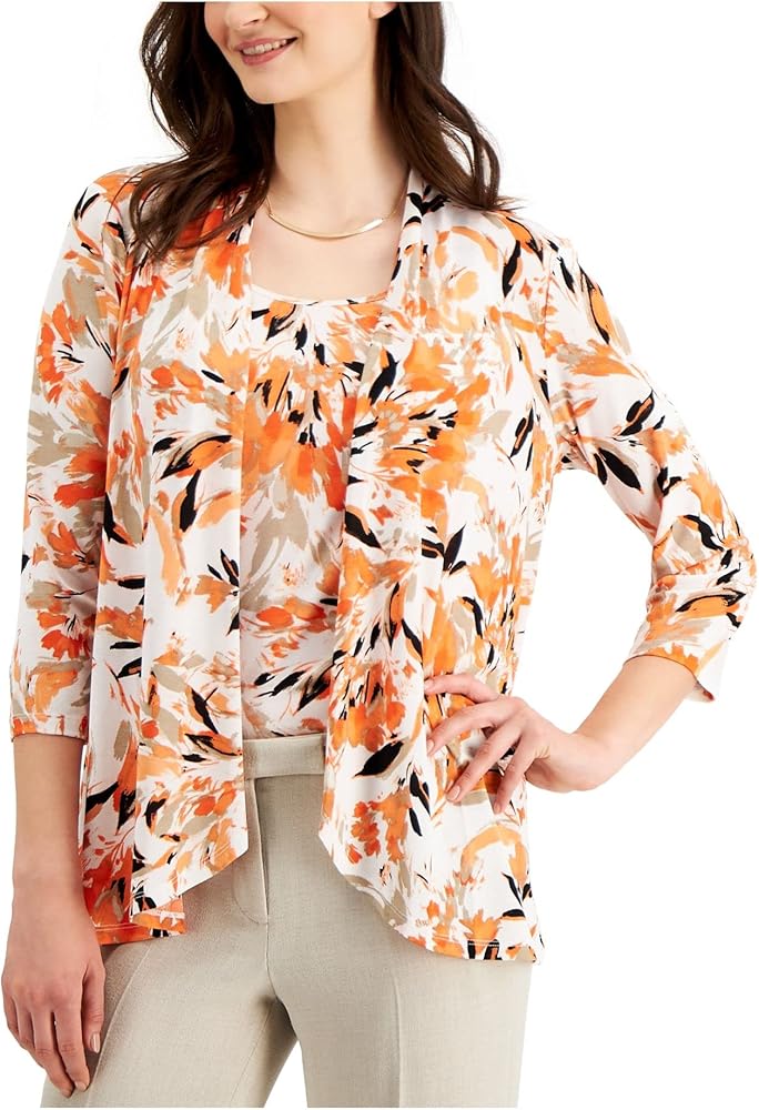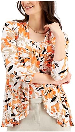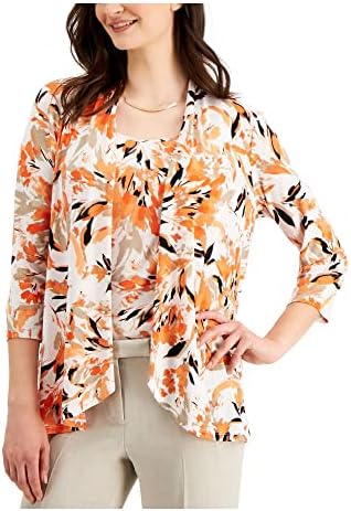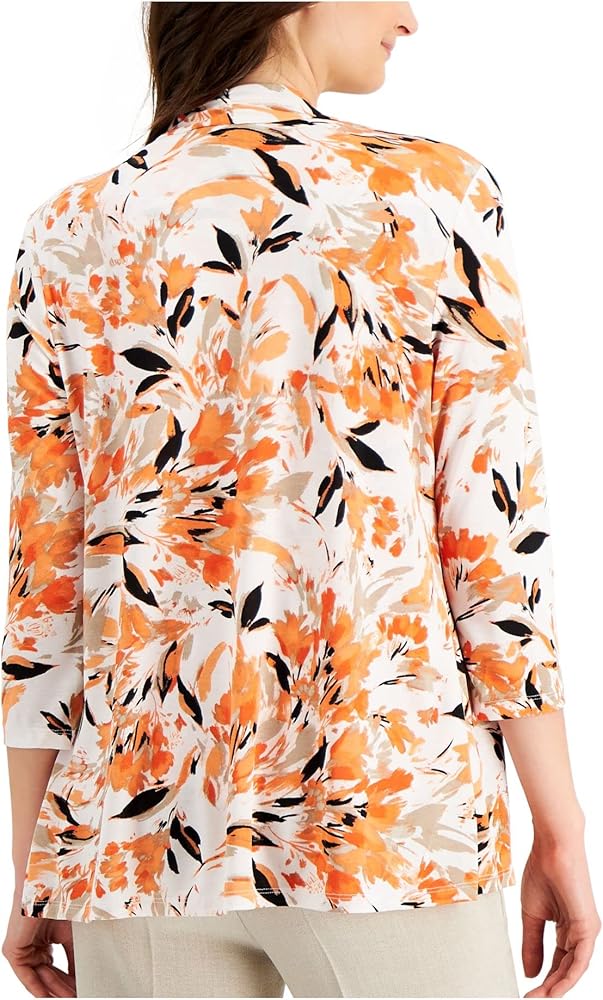 سترة حريمي من Kasper بتصميم زهور نباتية من البولي بيكيه ورقبة مكشكشة HI-LO منسوجة - - Valencia Multi-EQ3، L