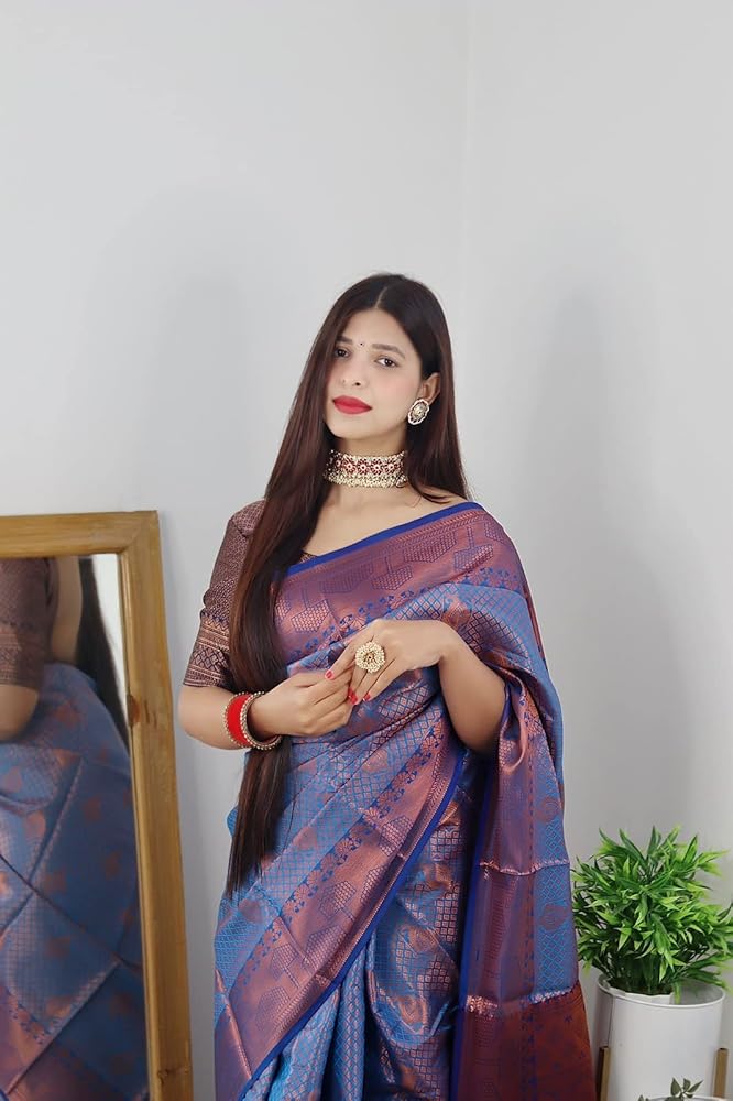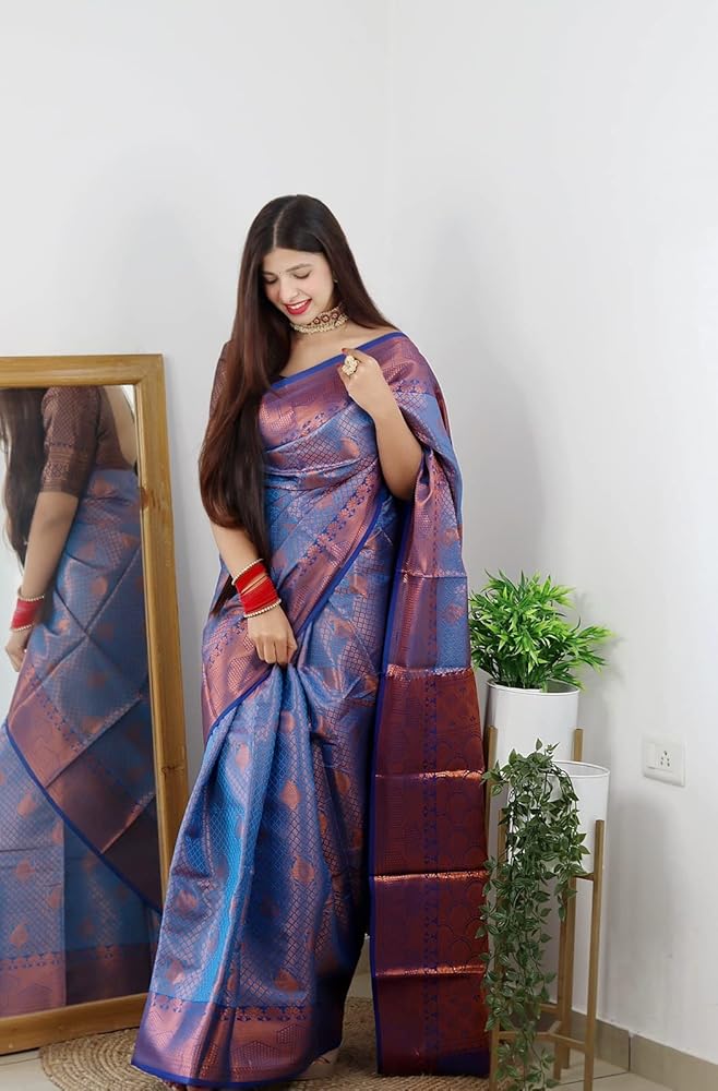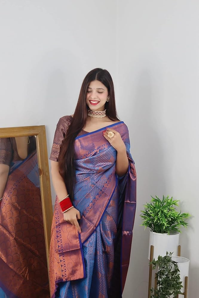 ساري كانجيفارام حريري ناعم للنساء مع بلوزة SGF11