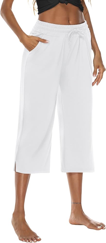 خامة مريحة: قبعات اليوجا النسائية هذه مصنوعة من 90% بوليستر + 10% سباندكس. يوفر القماش الناعم اللطيف على البشرة أداءً سلسًا ومنخفض الاحتكاك. إنه خفيف الوزن، ومسامي، وغير شفاف، وقابل للتمدد، ومريح عند ارتدائه لفترة طويلة. كابري بأرجل واسعة للنساء، سراويل قصيرة، كابري للنساء في الصيف الكاجوال.
