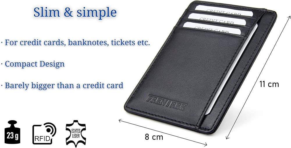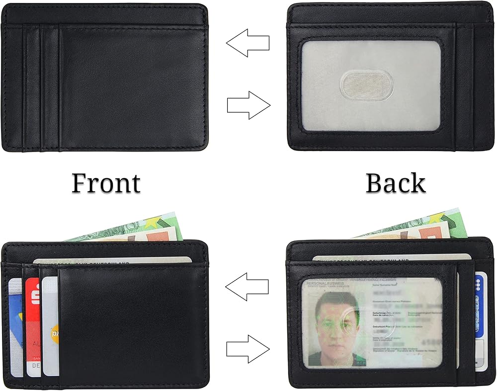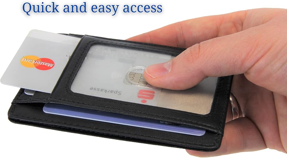 حامل بطاقات جلدي رفيع للغاية مع حماية من تحديد الهوية بموجات الراديو ونافذة عرض، محفظة بسيطة لبطاقات الائتمان والعملات النقدية من فرينتري®, أسود, مُبسط