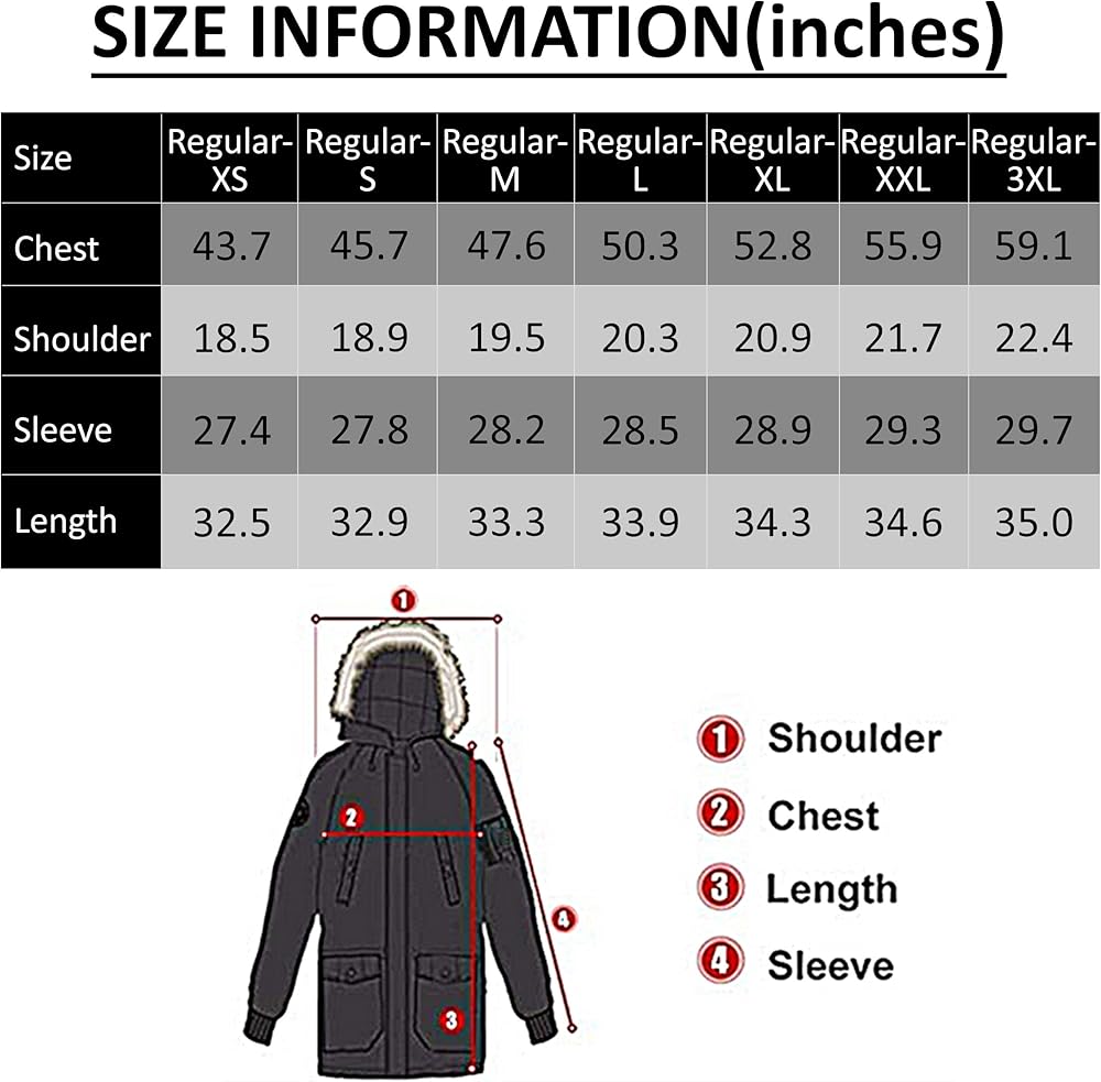 خدمة العملاء: نحن ندعم علامتنا التجارية بقوة. إذا لم يعمل جاكيت Winter Down Parka الرجالي كما توقعت، فما عليك سوى إرجاعه في غضون 30 يومًا واسترداد أموالك بدون متاعب! نأمل مخلصين أن تكون راضيًا تمامًا عن ستراتنا وخدماتنا!
