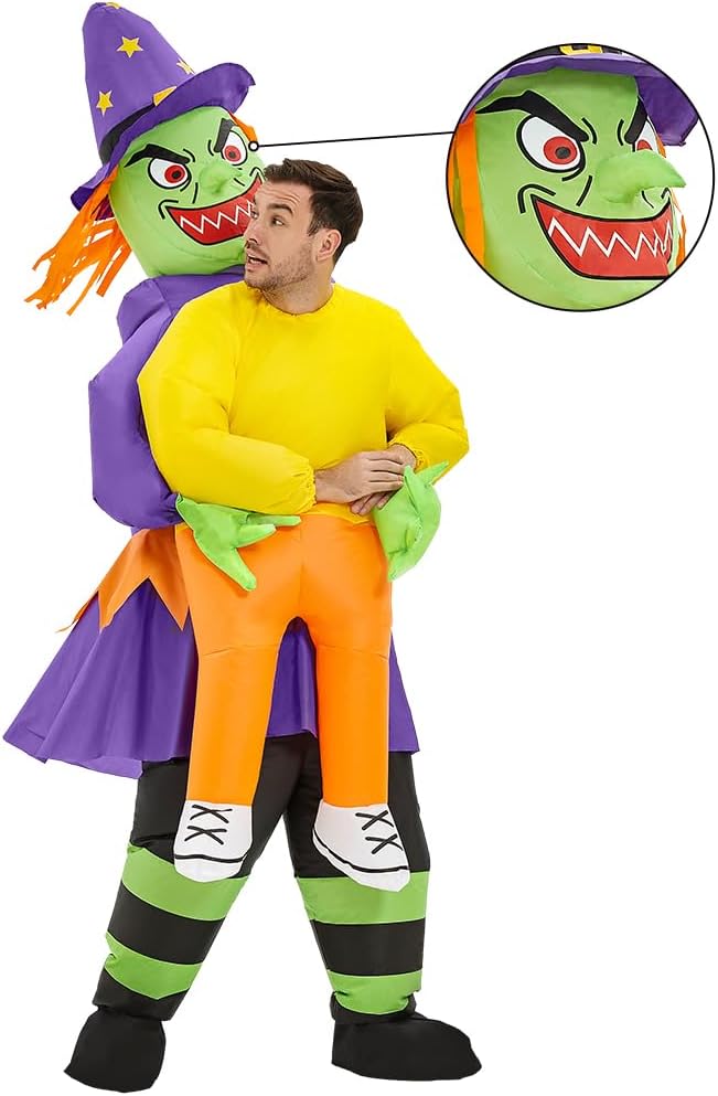 🎃【من السهل ارتداء زي الهالوين القابل للنفخ】: ارتدي زي الساحرة القابل للنفخ للبالغين أولًا، واسحبهما لأعلى مثل البنطلون، واغلق السحاب وقم بتشغيل المروحة للحصول على مظهر زي الساحرة للبالغين الفوري. اتبع التعليمات الموجودة على الجانب الخلفي من الصندوق الموجود في العبوة.