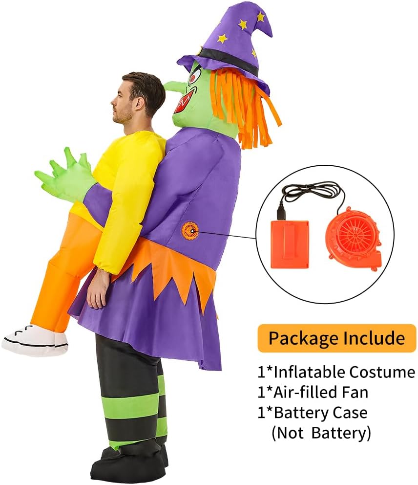 🎃【يتم نفخها بسرعة وتظل منفوخة لساعات】: يقوم زي الساحرة للبالغين بنفخ زي الهالوين المضحك هذا بالكامل في غضون دقيقة أو دقيقتين باستخدام المروحة المدمجة. استخدم 4 بطاريات AA (غير متضمنة) أو قم بتوصيلها بشاحن USB محمول للحفاظ على ملحقات الزي الساحرة منفوخة طوال فترة الهالوين.