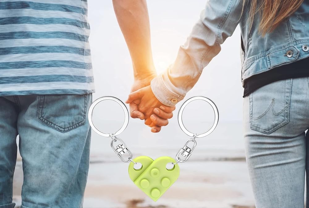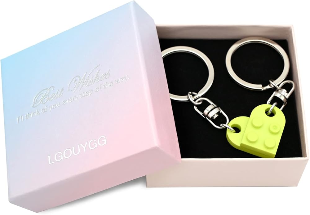 ❤❤ سلسلة مفاتيح متطابقة من الطوب - سلاسل مفاتيح لطيفة على شكل قلب (مجموعة من قطعتين)، يمكن تجميع أي كتلتين معًا لتشكيل شكل قلب مثالي. معًا يمكننا أن نتوافق بشكل جميل، عندما نكون منفصلين، نحن نصف بعضنا البعض. إنها هدية حلوة لصديقتك صديقها.