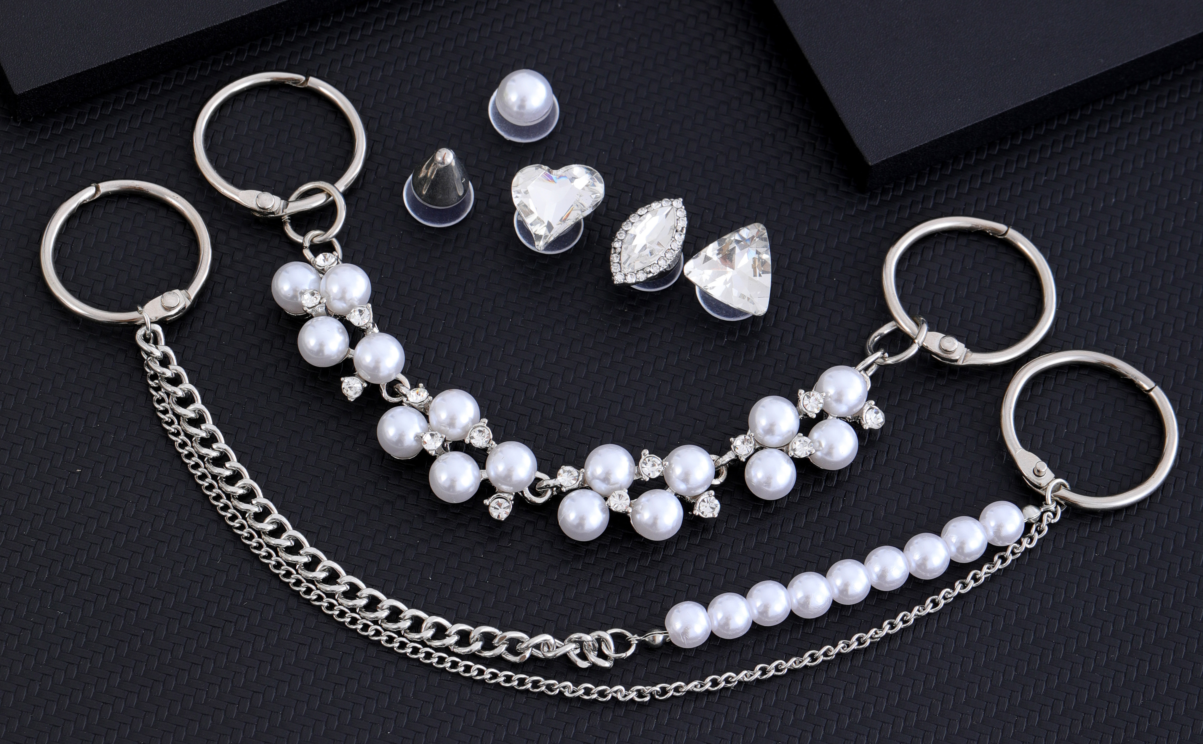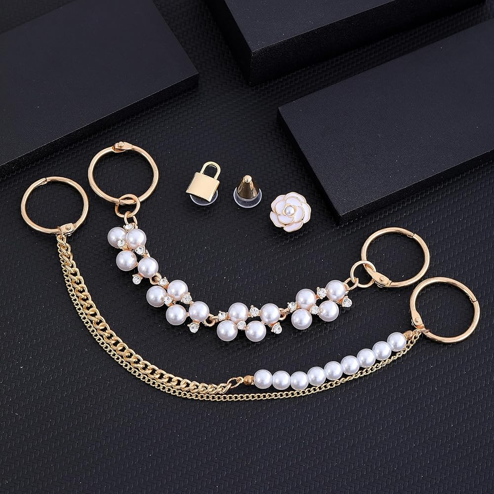 【مواد فاخرة متينة】: هذه الأحذية الساحرة المصممة مصنوعة بشكل أساسي من سبائك معدنية وكريستال حجر الراين واللؤلؤ الصناعي. والأهم من ذلك، بعد إجراء تحسيناتنا، يتم لصق الأزرار والحليات ببعضها البعض بقوة ولن تسقط بسهولة. ستضيف هذه الأحذية اللامعة للسيدات لمسة فريدة إلى حذائك وستجعلك مميزًا أينما ذهبت.