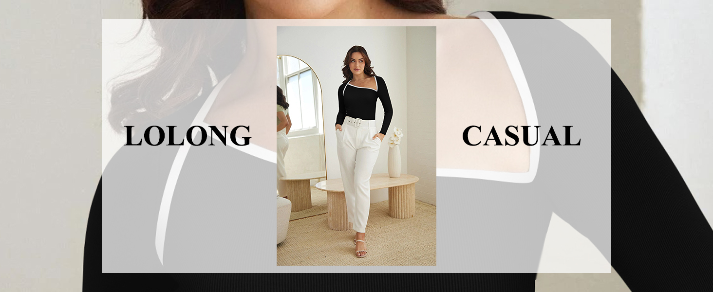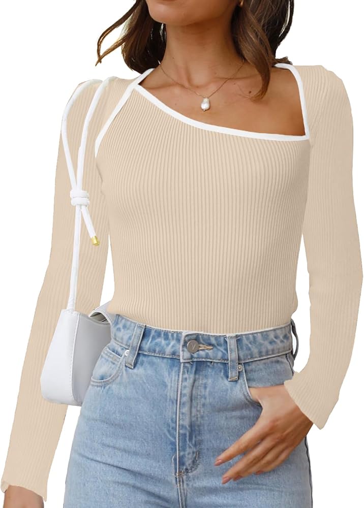 المميزات: تتميز هذه القمصان النسائية الكاجوال ذات الأكمام الطويلة بخط رقبة غير متماثل، مما يخلق مظهرًا مثيرًا للاهتمام وجذابًا بصريًا. الجزء العلوي مصنوع من نسيج مطاطي ومريح يحتضن الجسم دون تقييد الحركة، ويبرز المقاس الضيق منحنيات الجسم وخطوطه، بينما توفر الأكمام الطويلة التغطية والدفء