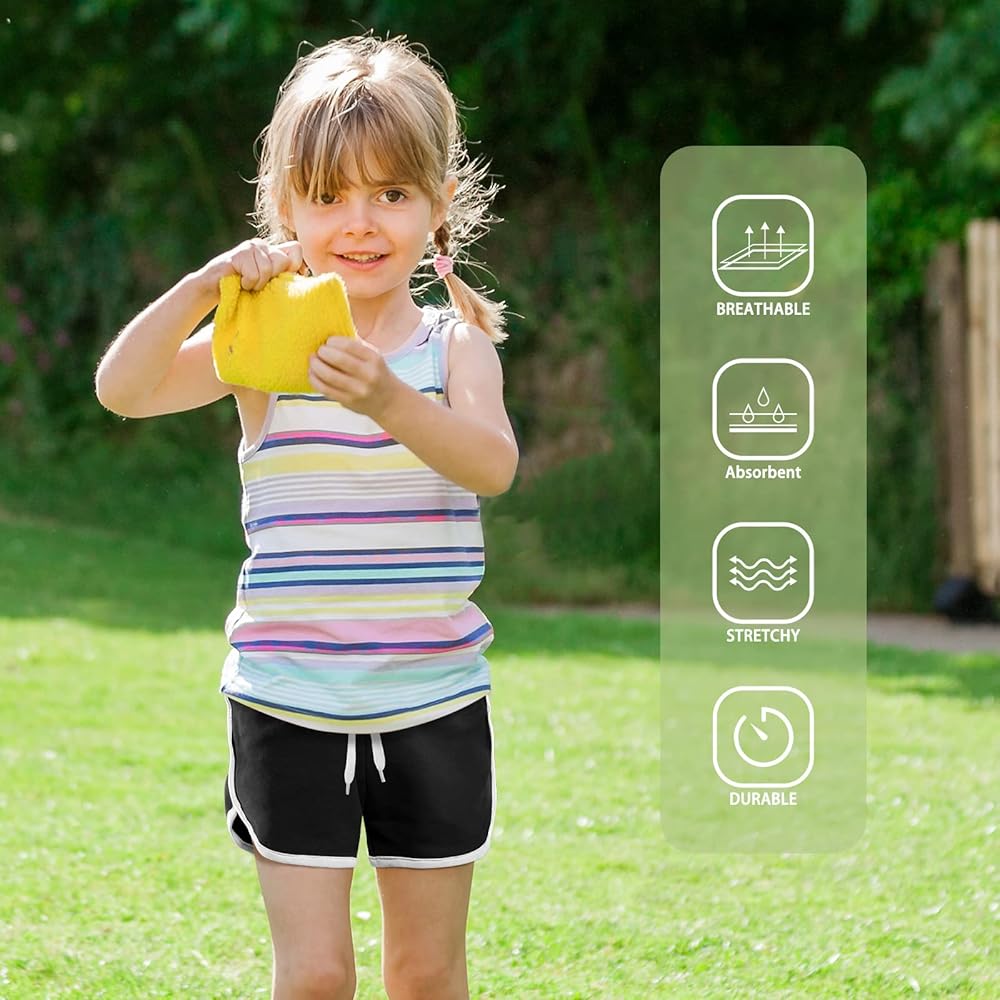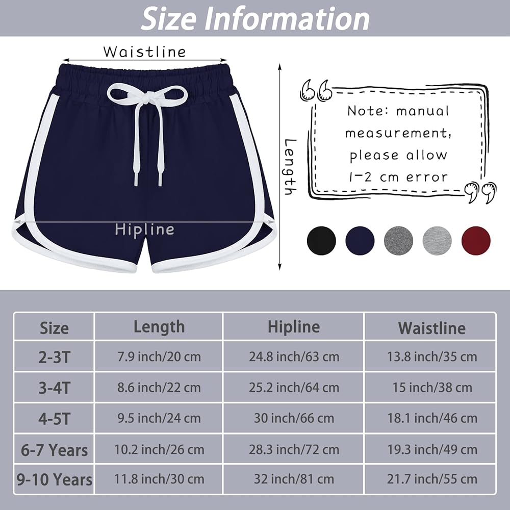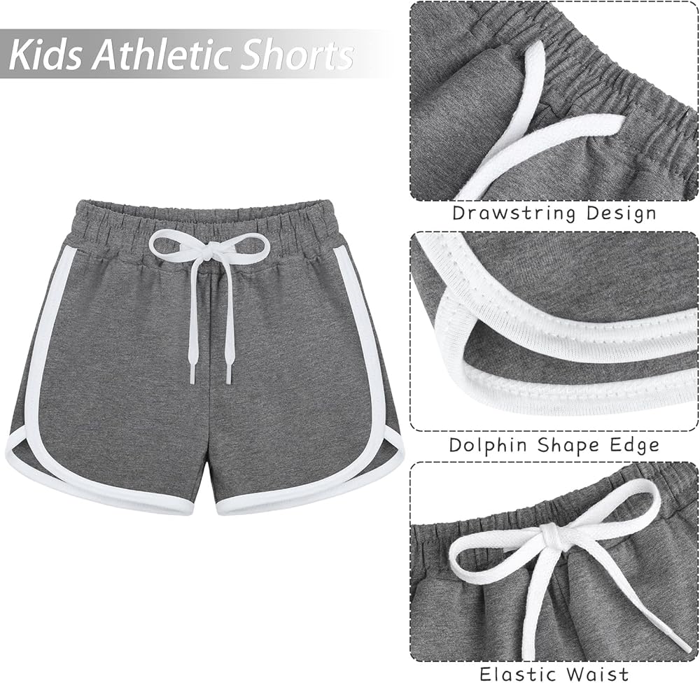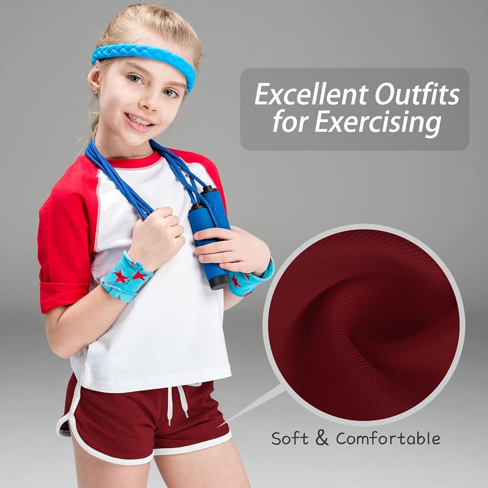 خامة عالية الجودة: هذه السراويل القصيرة للفتيات للجري مصنوعة من مادة قطنية فاخرة، ناعمة الملمس، مع تهوية ممتازة وامتصاص العرق، تسمح شورتات التمرين للأطفال بالتحرك بحرية، مما يمنحهم شعورًا مريحًا