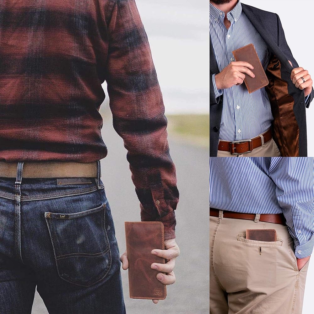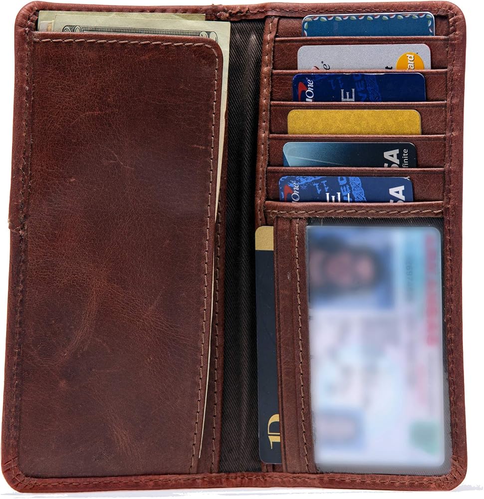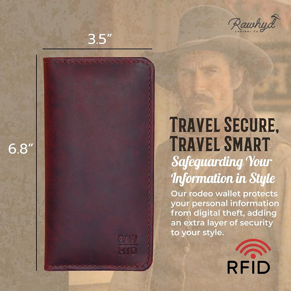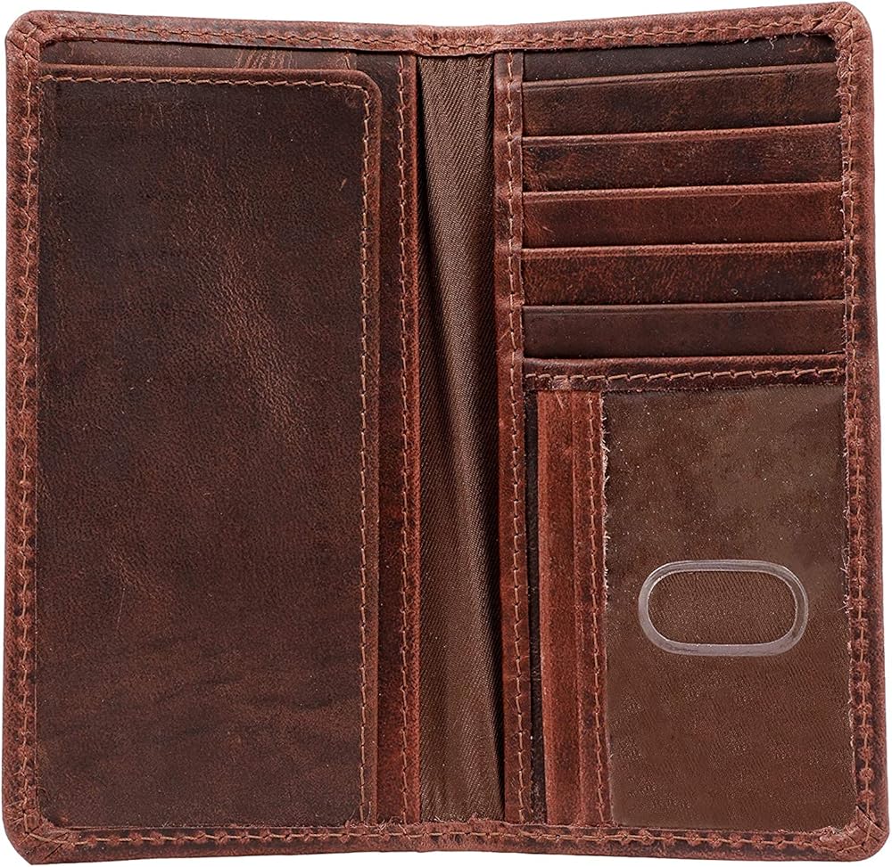 رفيعة وصغيرة الحجم: بمقاس 16.75 سم × 8.89 سم، تحتوي محفظة روديو الرجالية هذه على مساحة لجميع احتياجاتك. تناسب هذه المحافظ المصنوعة من جلد رعاة البقر للرجال 8 بطاقات إجمالية وتحتوي على جيبين جانبيين طويلين وغطاء لسهولة الوصول إلى دفتر الشيكات أو النقود.