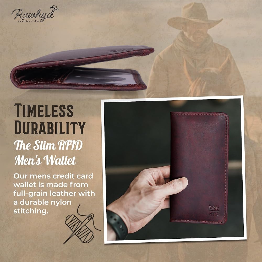 محافظ جلدية غربية للرجال ذات طيات مزدوجة: مصنوعة يدويًا على يد حرفيين، محفظة دفتر الشيكات الغربية الخاصة بنا مصنوعة من جلد محبب بالكامل مع تصميم زاوية من الجلد يعلوه نجمة كونشو. تحتوي محفظة رعاة البقر هذه التي تحجب RFID على كل المساحة التي تحتاجها للنقود والبطاقات بينما تظل نحيفة في جيبك.