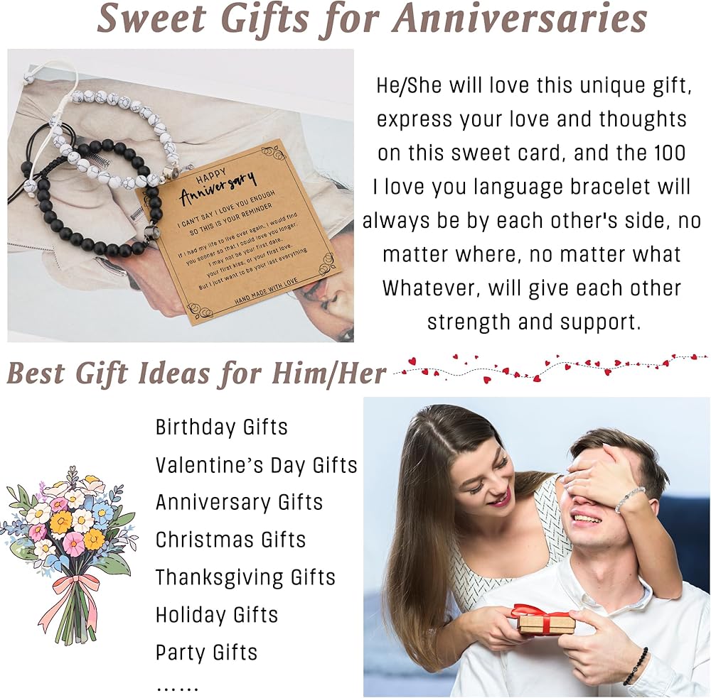 أساور I Love You بـ 100 لغة مطابقة لهدايا الأزواج للرجال، والصديق، والصديقة، والزوج، ورفيق الروح، والخطيب، وحبي، وهدايا فريدة من نوعها لذكرى عيد الميلاد وعيد الحب وعيد الميلاد له ولها