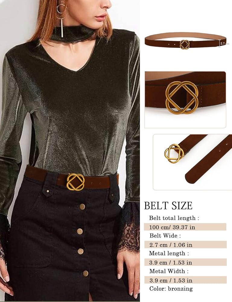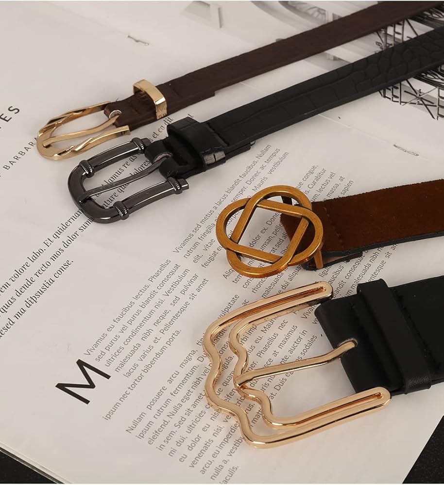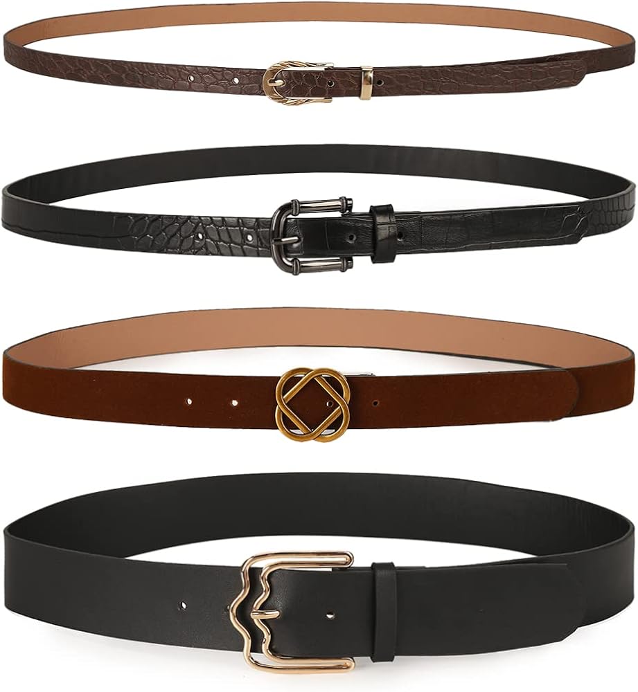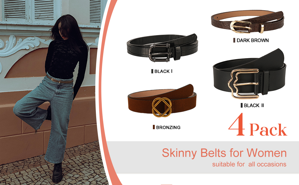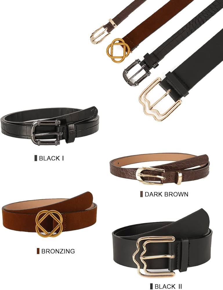 4 قطع حزام جلدي للسيدات - سوف تحصل على 4 قطع من رهانات الخصر بألوان مختلفة: الأسود والبرونزي والبني الداكن
