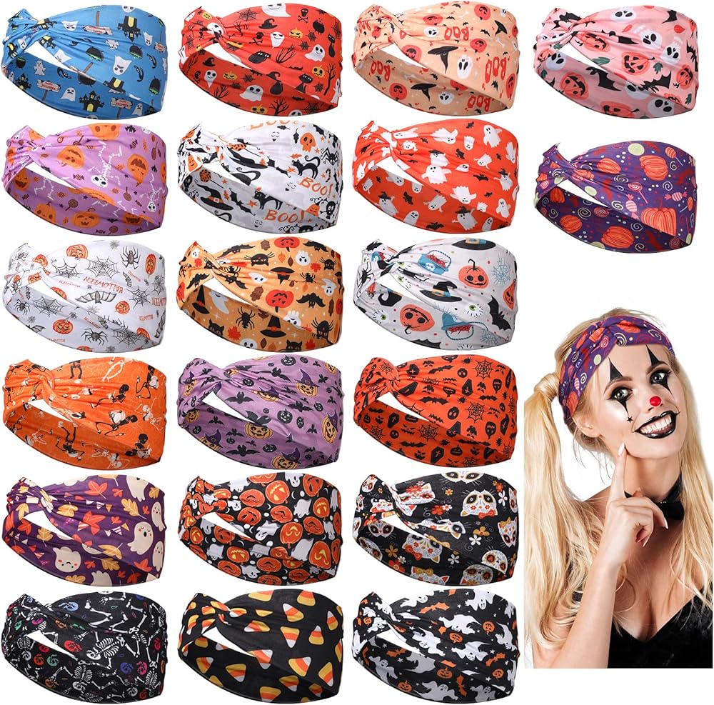 20 قطعة عصابات رأس هالوين خدعة أم تريت تمتد عصابات معقودة اليقطين مرنة عقدة التفاف الشعر عصابات رأس شبح تجريب اليوغا تنفس للنساء الفتيات حزب هالوين (نمط الشبح)