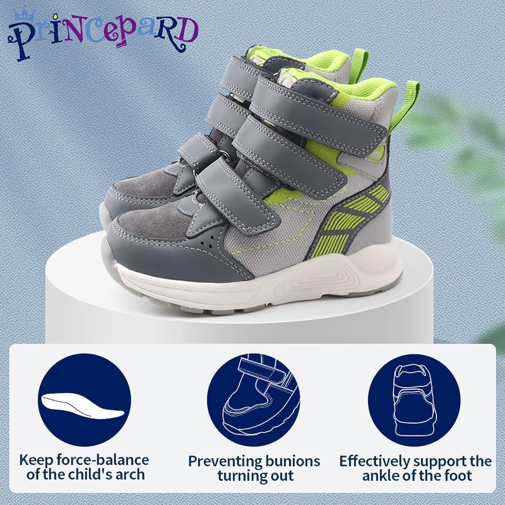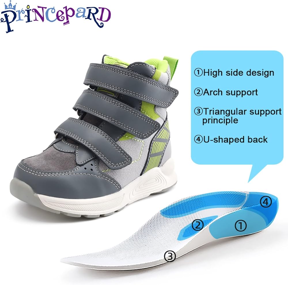 تصميم دعم القوس والكاحل: أحذية عالية الجودة لتقويم العظام مع حشوات على شكل حرف U يمكنها إصلاح الكاحل والقدم لمنع القدم من الدوران إلى الداخل أو الخارج، وتساعد على تطوير وضع المشي الصحيح للطفل.