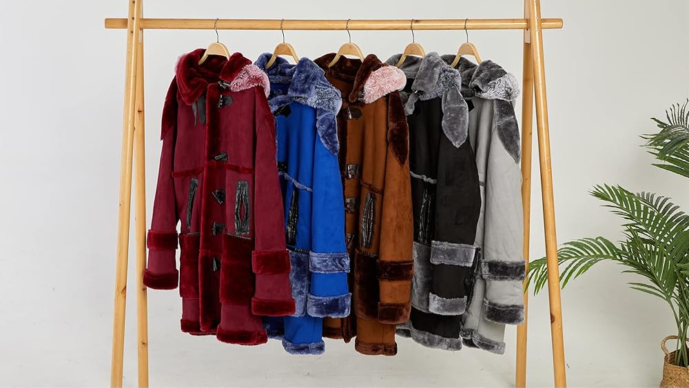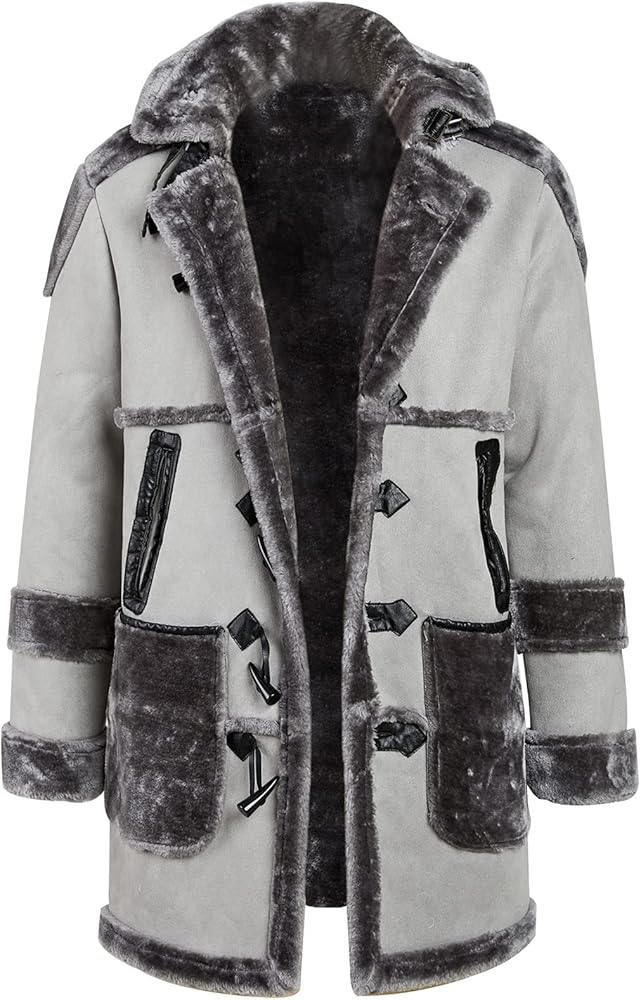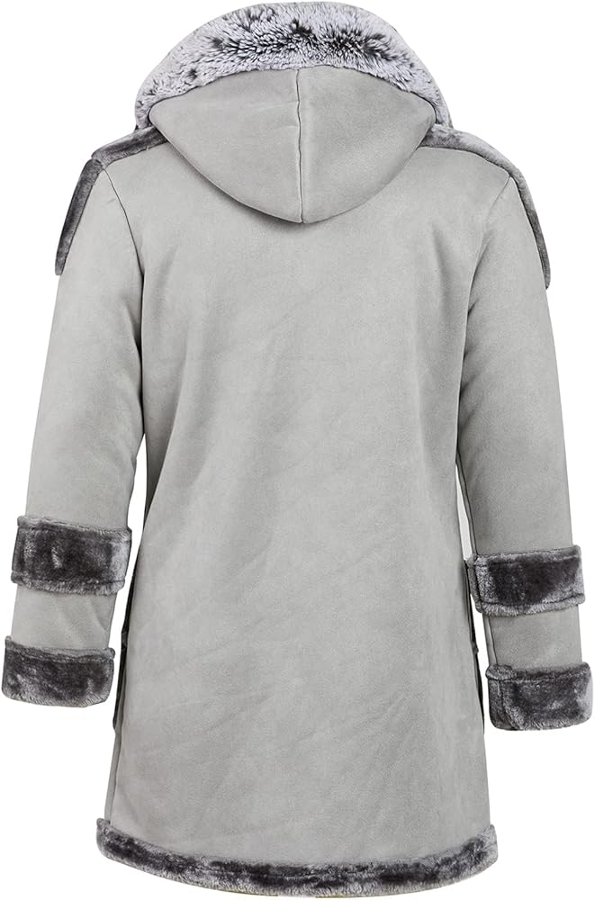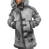 • المزايا: معطف مشي من الشيرلنغ الصناعي مع غطاء من الجلد السويدي والجزء الداخلي من الشيربا، وياقة طية صدر مطوية، وإبزيم قرن أمامي، وجيبين جانبيين كبيرين، وغطاء رأس من فراء الثعلب الصناعي، طراز عتيق يجعلك تشعر بالرضا والراحة عند ارتدائه.