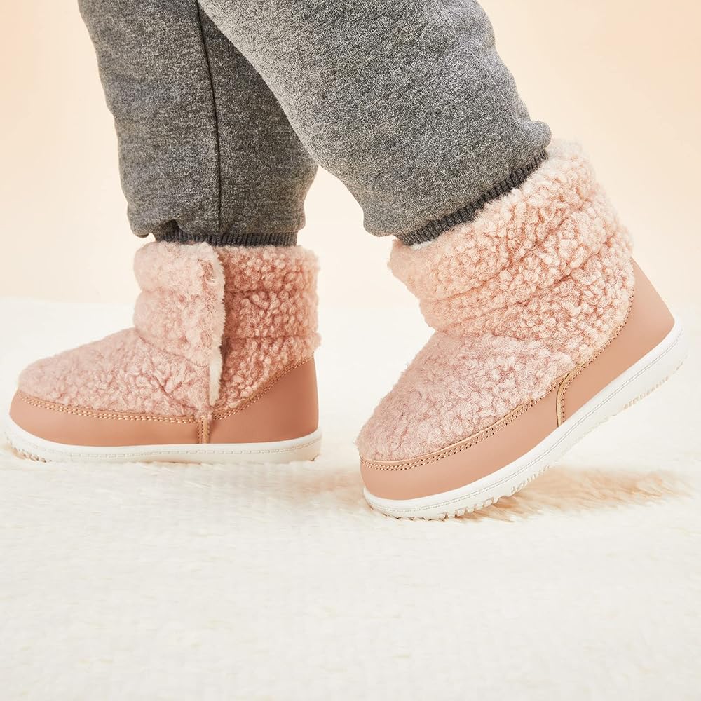 ناعم ودافئ: مصنوع من فرو صناعي ناعم ومريح لتوفير الراحة والدفء، هذه الأحذية مثالية للأطفال الذين يمشيون في الثلج
