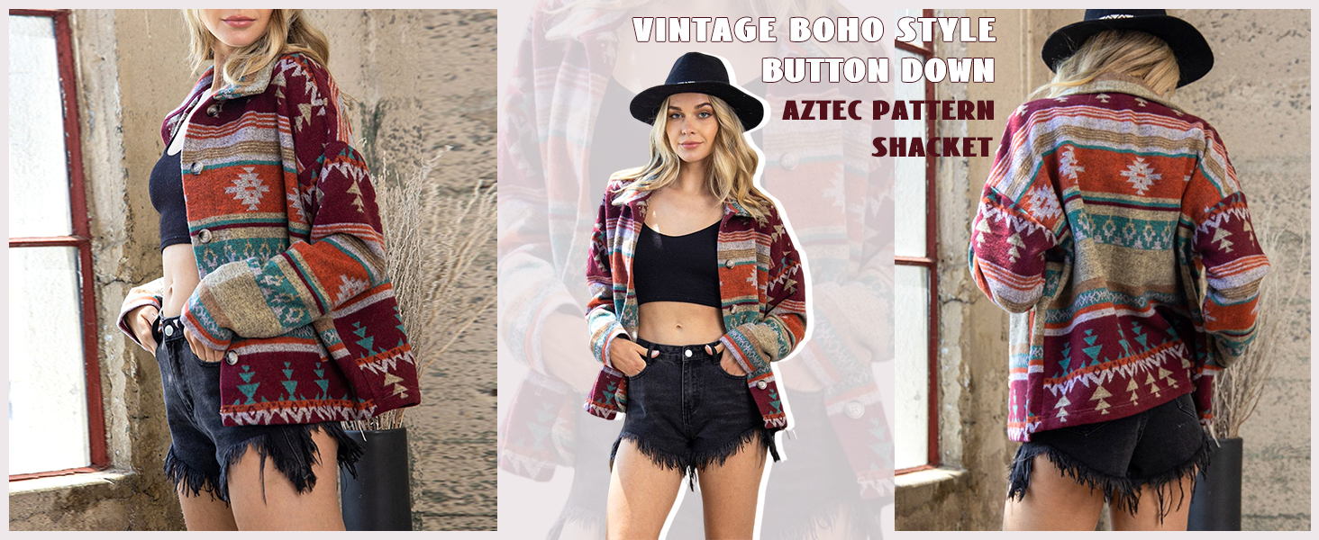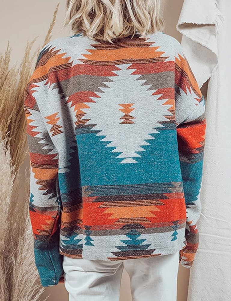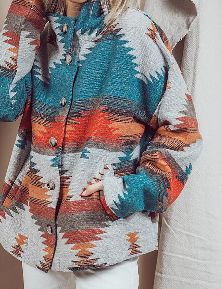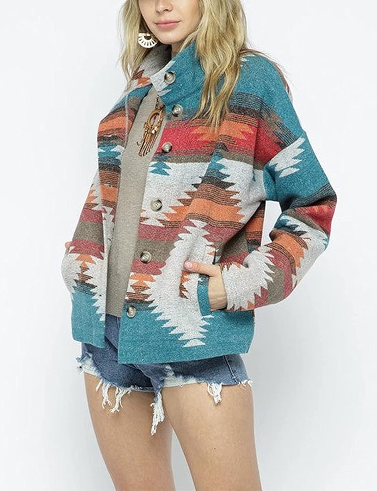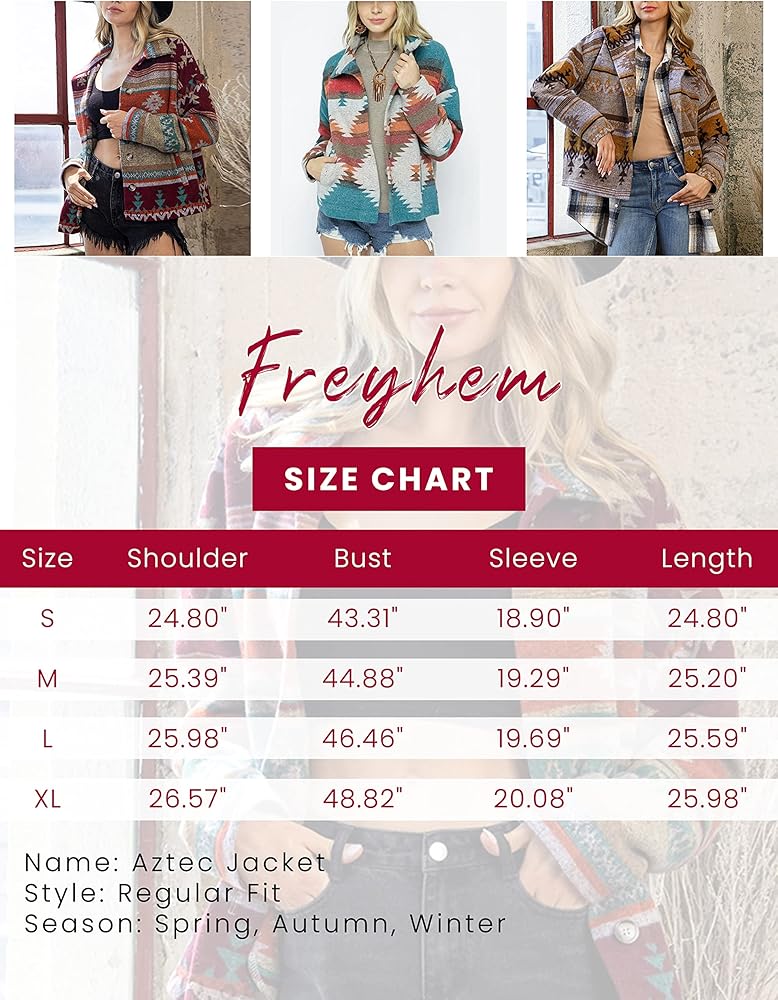 سترة Freyhem النسائية الخريفية من الأزتيك، قمصان غربية كلاسيكية من مزيج الصوف بأزرار سفلية