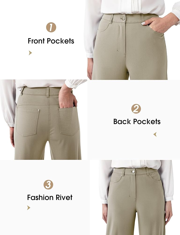 قصة كلاسيكية: هذه السراويل المستقيمة ذات الأرجل العريضة للنساء هي ضرورة في خزانة الملابس مع قصة كلاسيكية يمكن أن تطيل ساقيك، وتسلط الضوء على أفضل سماتك، وتجعل مظهرك أكثر جمالاً. سيعمل هذا البنطلون بالازو حتى إذا كنت متعرجًا أو لديك عضلة ساق وفخذين سميكين، هو أساس جيد مع العديد من أنماط القمصان، والعمل على الملابس اليومية غير الرسمية.