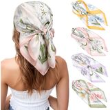 【عبوة من 4 أوشحة شعر مربعة】معبأة بـ 4 أوشحة رأس مربعة بألوان مختلفة. مقاس الوشاح المربع 70*70 سم/27*27 بوصة. اختر وشاح رأس من الساتان بألوان مختلفة يتوافق مع الملابس المختلفة، فأنت أنيق وساحر.