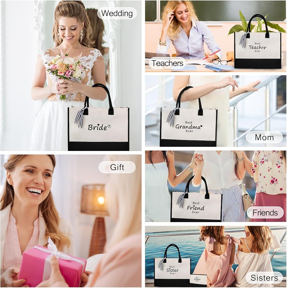 • 👜【هدية للنساء】مظهر حقيبة العروس هدية شخصية هو تصميم بسيط باللونين الأبيض والأسود، والجزء الأمامي الأول عبارة عن نمط تطريز عالي الكثافة، مع شريط أنيق مخطط، أنيق وجميل، مع نمط شخصي فريد. مع حقيبة مكياج (9 بوصات) × 6 بوصة × 2.7 بوصة) يمكن أن تحمل مستحضرات تجميل صغيرة. هدية مثالية للأم أو الابنة أو الأخت أو الصديق أو المعلم أو العروس، مناسبة لعيد الحب، وعيد المعلمين، والكريسماس، وأعياد الميلاد، وحفلات الزفاف والذكرى السنوية. يمكن استخدامها أيضًا كهدية حقيبة هدايا لحمل الهدايا.