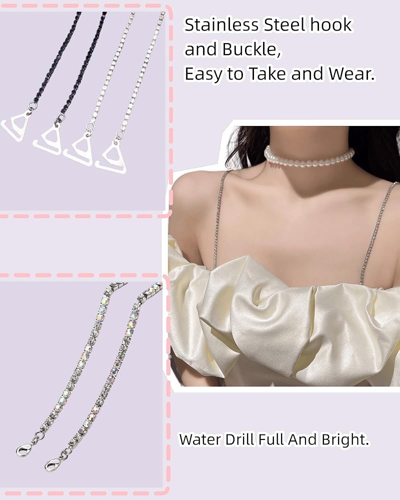 JetlagClock زوجان من أشرطة حمالة الصدر الشفافة + زوجان من أشرطة حمالة الصدر من حجر الراين، استبدال أشرطة حمالة الصدر، أشرطة حمالة صدر شفافة قابلة للتعديل لحمالة الصدر بدون حمالات وفستان بدون حمالات
