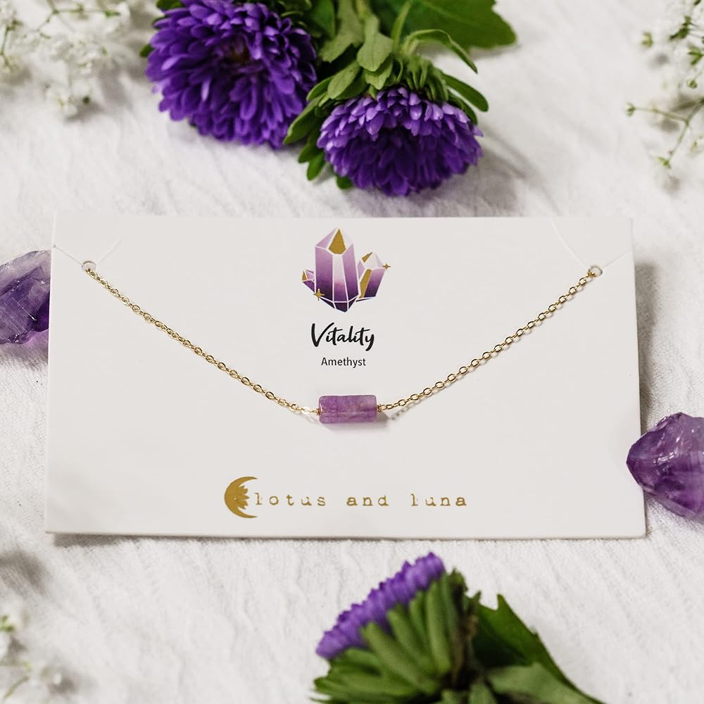 مثالية كهدية: تأتي كل قلادة مع بطاقة قلادة تظهر أحجار الطاقة العلاجية وخصائص محاذاة الشاكرا بالإضافة إلى حقيبة اللوتس ولونا المميزة.