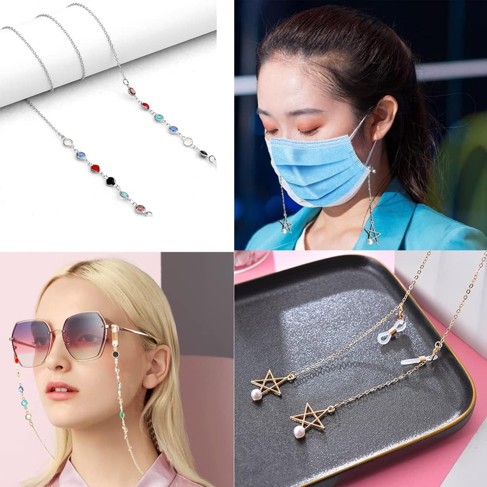 الاستخدام على نطاق واسع: سلسلة النظارات المتلألئة هذه مناسبة للنظارات الشمسية ونظارات القراءة والنظارات اليومية وما إلى ذلك، تمنع نظارتك من فقدان نظارتك عندما تكون في الهواء الطلق، ويمكنك أيضًا إزالة أطراف جل السيليكا لاستخدامها كديكور لطيف للقلادة أو سلاسل قناع. .