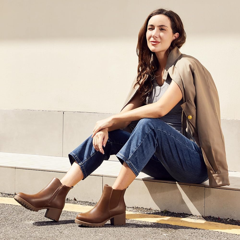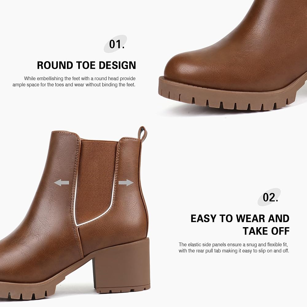 - أنيقة ومريحة: تتميز أحذية تشيلسي النسائية هذه بكعب منخفض مكتنز، مما يوفر الأناقة والراحة للارتداء طوال اليوم.