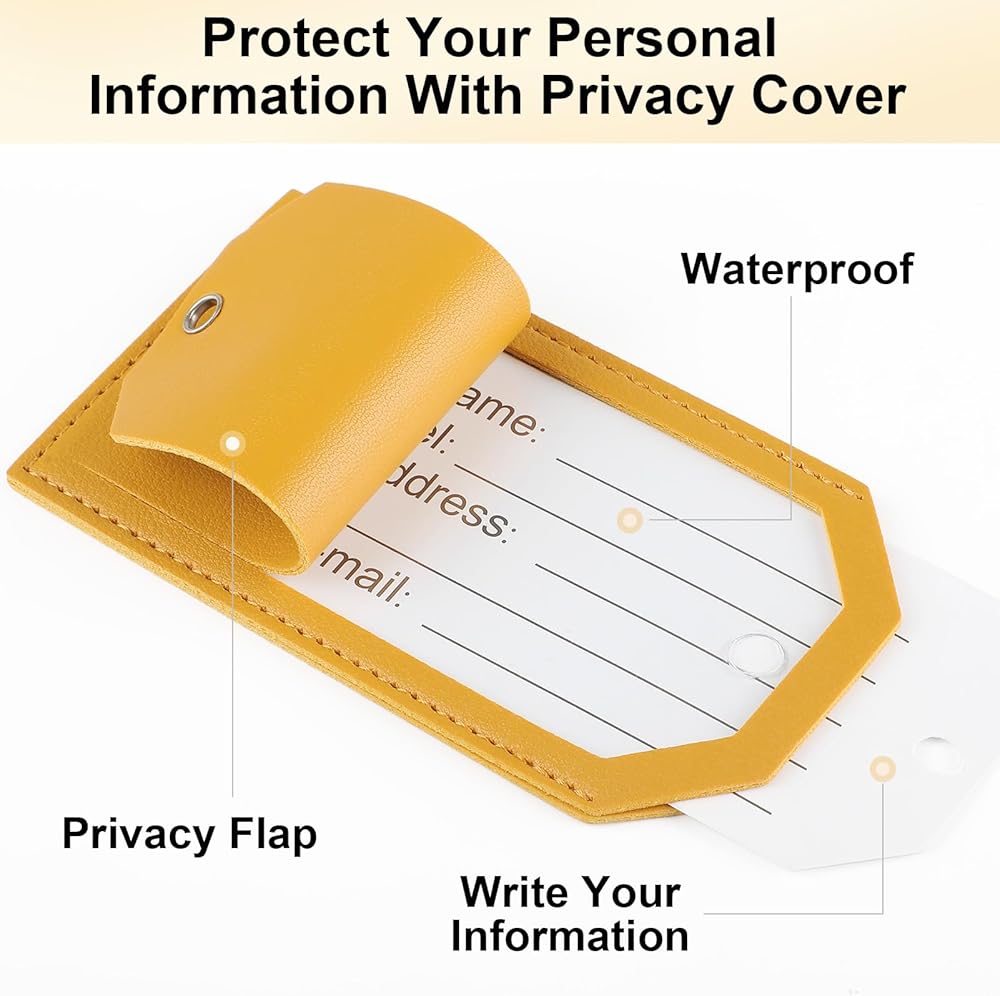 • حماية الخصوصية: توجد بطاقة معلومات مغطاة بقطعة من ورق PVC الشفاف المقاوم للماء. تم تصميم بطاقة الأمتعة بغطاء للخصوصية يغطي معلوماتك الشخصية بالكامل. تجنب التطفل الخبيث واستمتع برحلة آمنة وممتعة.