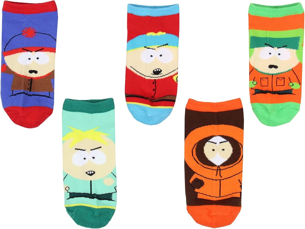 تصميمات مفصلة مستوحاة من شخصيات الكرتون - تتميز هذه العبوة المكونة من 5 جوارب بطول الكاحل من ساوث بارك بـ 5 من شخصياتك المفضلة من الكوميديا الكرتونية غير الموقرة، كارتمان وكايل وستان وكيني وباترز.
