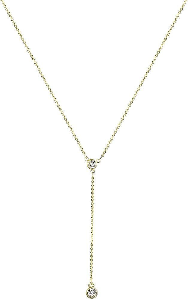 قلادة CAROVO Lariat للنساء، قلادة فضية أنيقة 14 قيراط ألماس مطلي بالذهب عيار 14 قيراط على شكل حرف Y قلادات طويلة على شكل قطرة شفة متألقة وسلسلة من الخرز مجوهرات للهدايا.