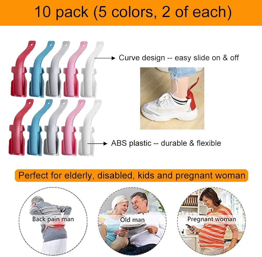 10 قطع من قرون مساعدة الاحذية لكبار السن من الرجال والنساء - مساعد احذية لارتداء حذائك - جهاز مساعدة الاحذية بخطوة واحدة لكبار السن - مساعد عصا الاحذية - بوق حذاء واقف