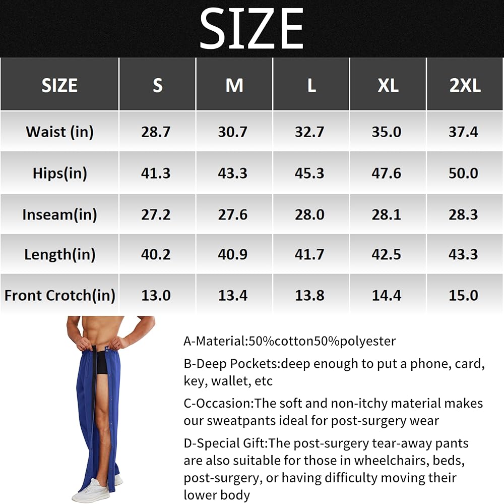 【مناسبة مناسبة】: زوج متعدد الاستخدامات من الجوانب المنفصلة قابل للتمزيق رائع لجميع المناسبات. المادة الناعمة التي لا تسبب الحكة تجعل بنطالنا الرياضي مثاليًا للارتداء بعد العمليات الجراحية.