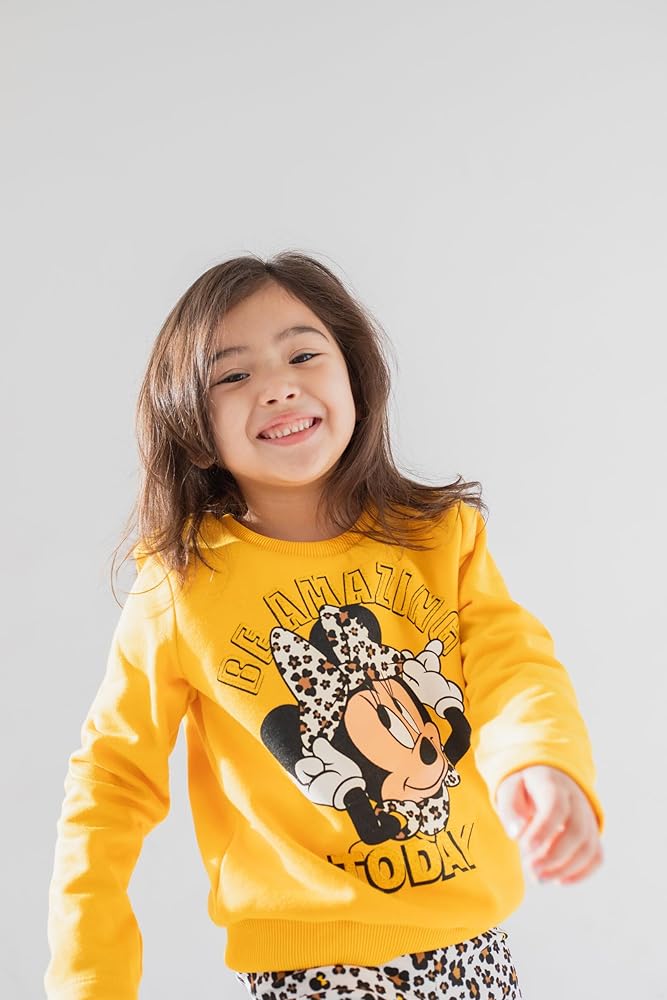 • سويت شيرت وسراويل ضيقة للفتيات الصغيرات من ديزني ميني ماوس مرخصة رسميًا، لطيفة وأنيقة بأكمام طويلة