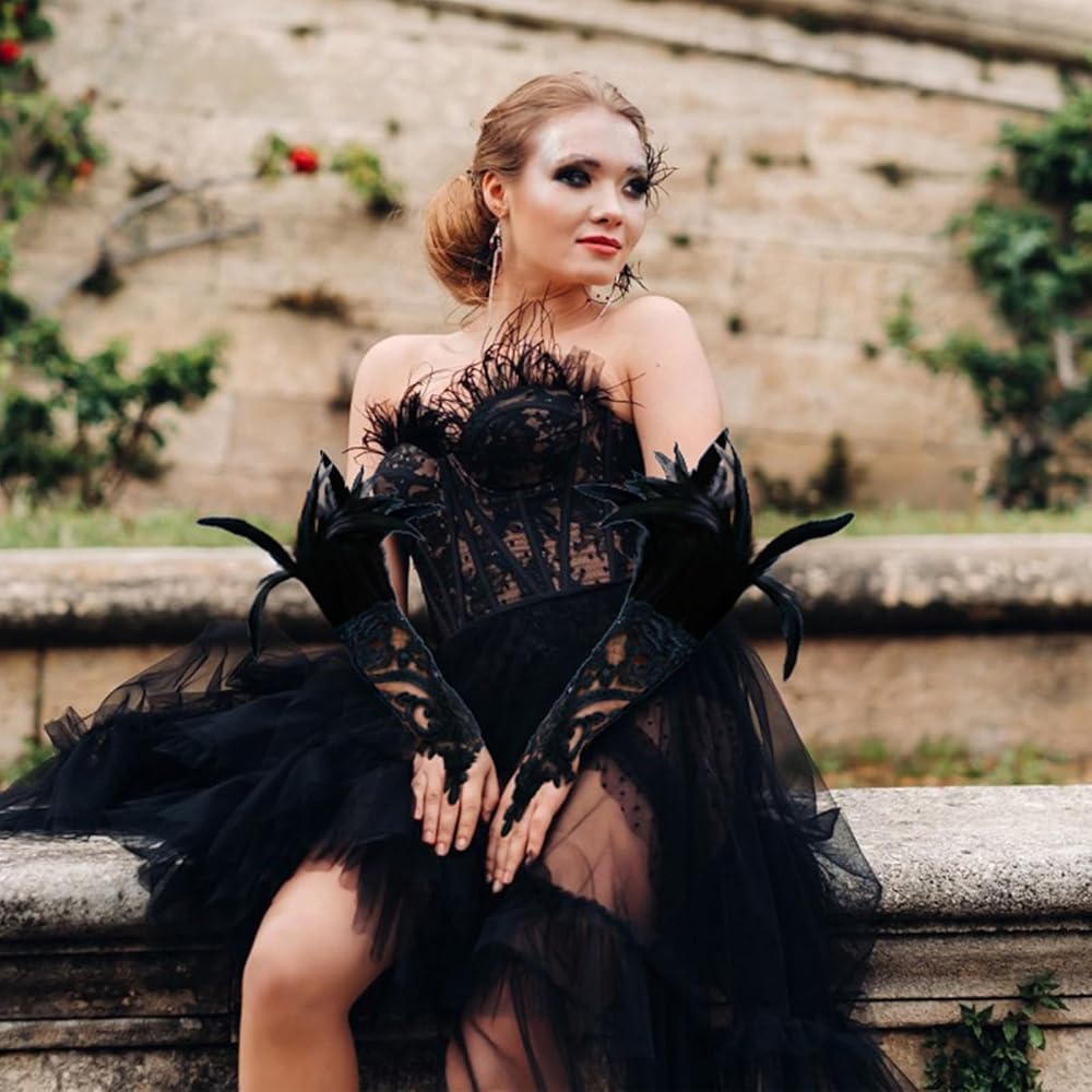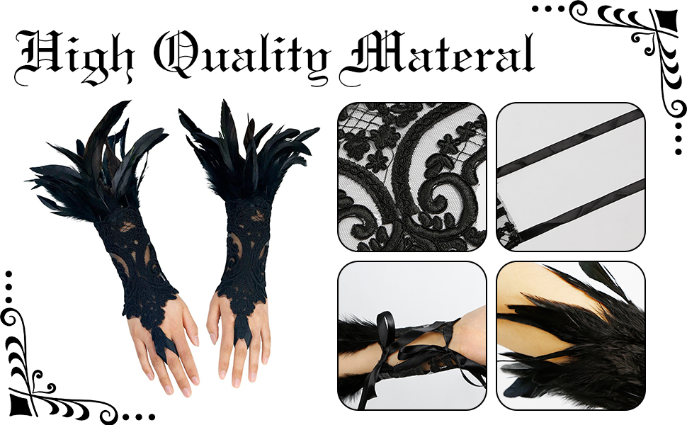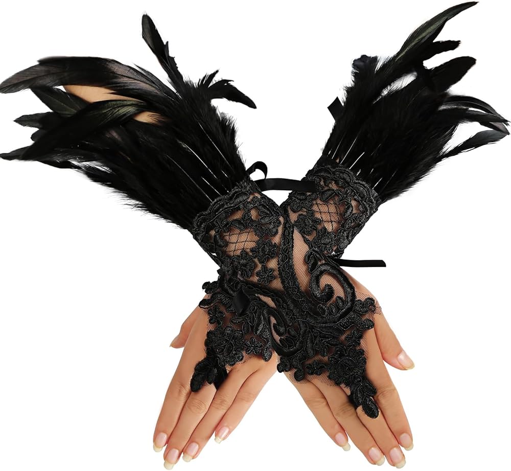 🌼【جودة صناعة يدوية】 قفازات الدانتيل الريش مصنوعة يدويًا بنسبة 100% من ريش كوكتيل الديك المصبوغ، ويتم اختيار كل ريشة بعناية. يضمن لك الدانتيل والريش الناعم للغاية وجيد التهوية ارتداء القفازات القوطية بشكل مريح. ريشة فاخرة، أكثر جمالاً وممتلئة.