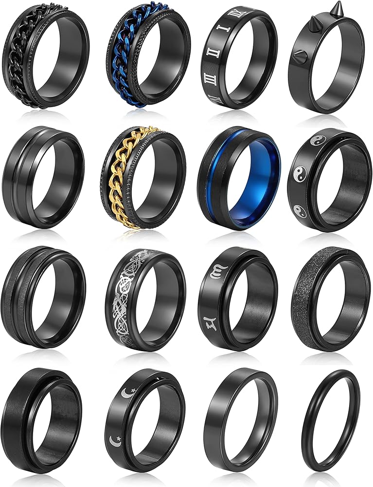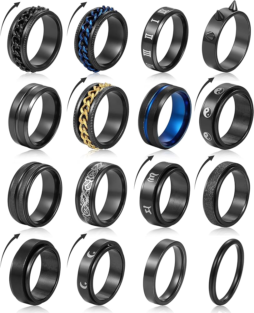 • ✔️هدية يوصى بها بشدة: لمسة نهائية مصقولة وغير لامعة، ذكورية ورائعة، وبعضها مزود بسلسلة تململ لتخفيف القلق. إنها هدية مثالية لنفسك، أو حبيبك، أو خطيبك، أو صديقتك، أو صديقك في عيد الشكر، أو عيد الميلاد، أو عيد الفصح، أو الذكرى السنوية، أو الزفاف، أو عيد الحب، أو عيد الميلاد، أو رأس السنة الجديدة.