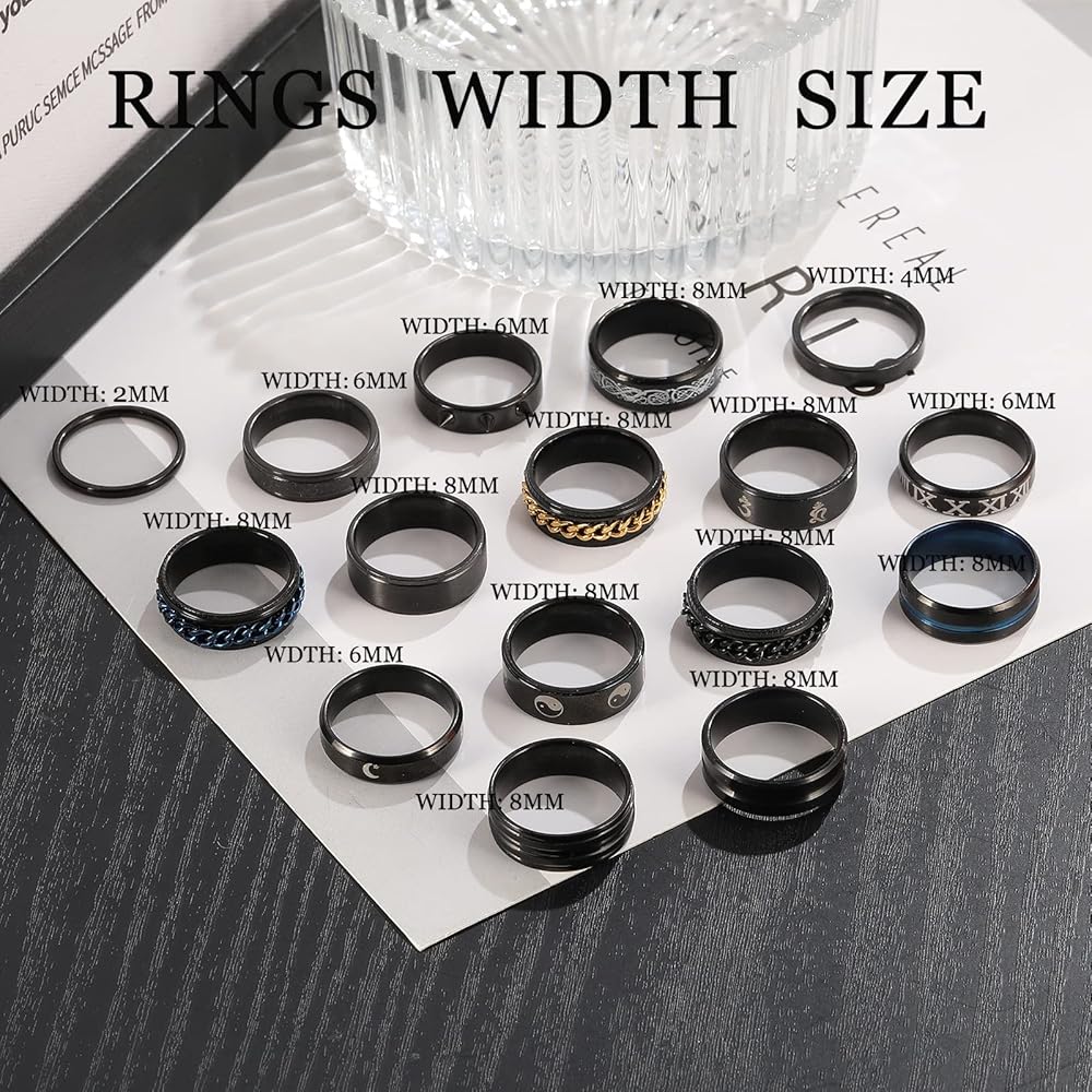 • ✔️حجم الخاتم: مجموعة الخواتم النسائية السوداء للرجال متوفرة بمقاسات 6-11.